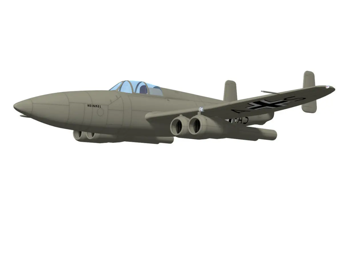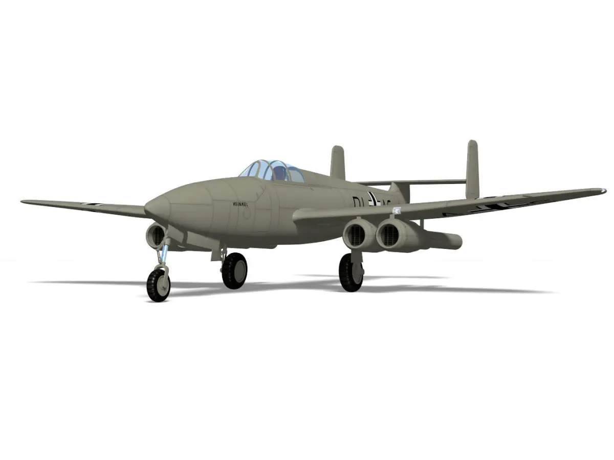 This is a jet fighter produced by Heinkel, which first flew in 1941.The model is the type equipped with Argus pulse jet engines.The modeling of the cockpit is simple.The model's landing gear is divided into flight state and landing state parts.