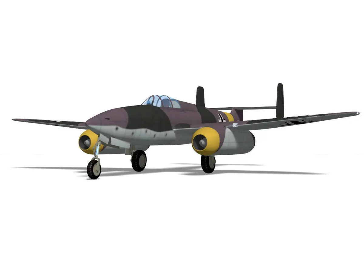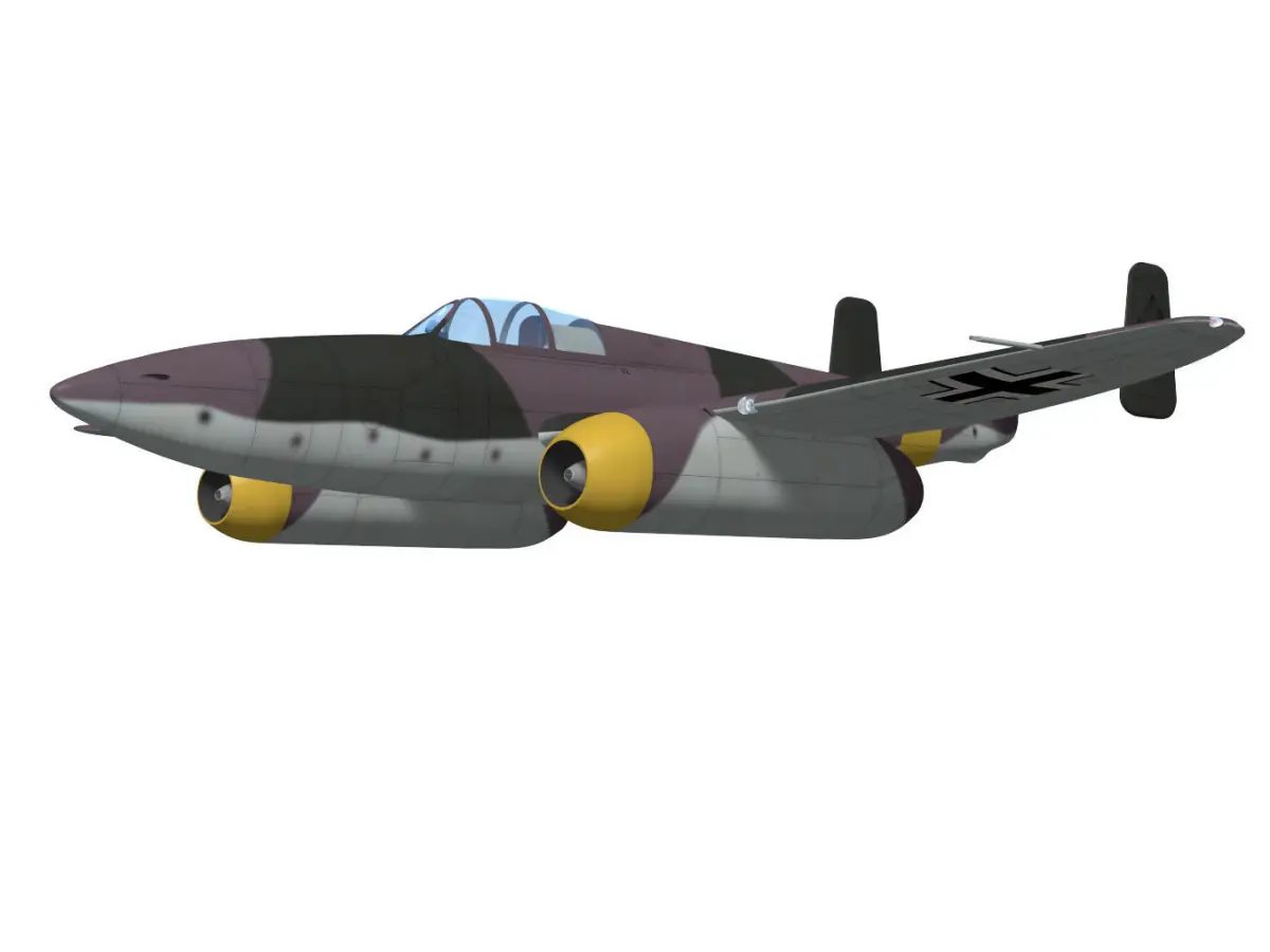 This is a jet fighter produced by Heinkel, which first flew in 1941.The model is the V2 type.The modeling of the cockpit is simple.The model's landing gear is divided into flight state and landing state parts.