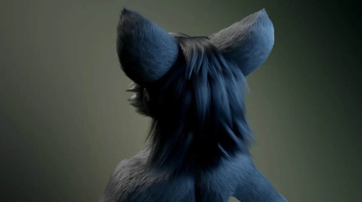 The model contains 25 Fur divisions ( Hair Particle system )