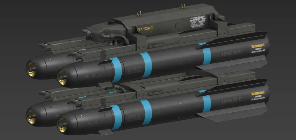 High Quality 3D model of Hellfire Missile+ Launcher, accurate details