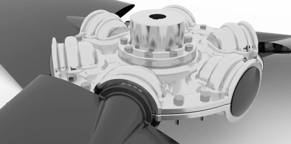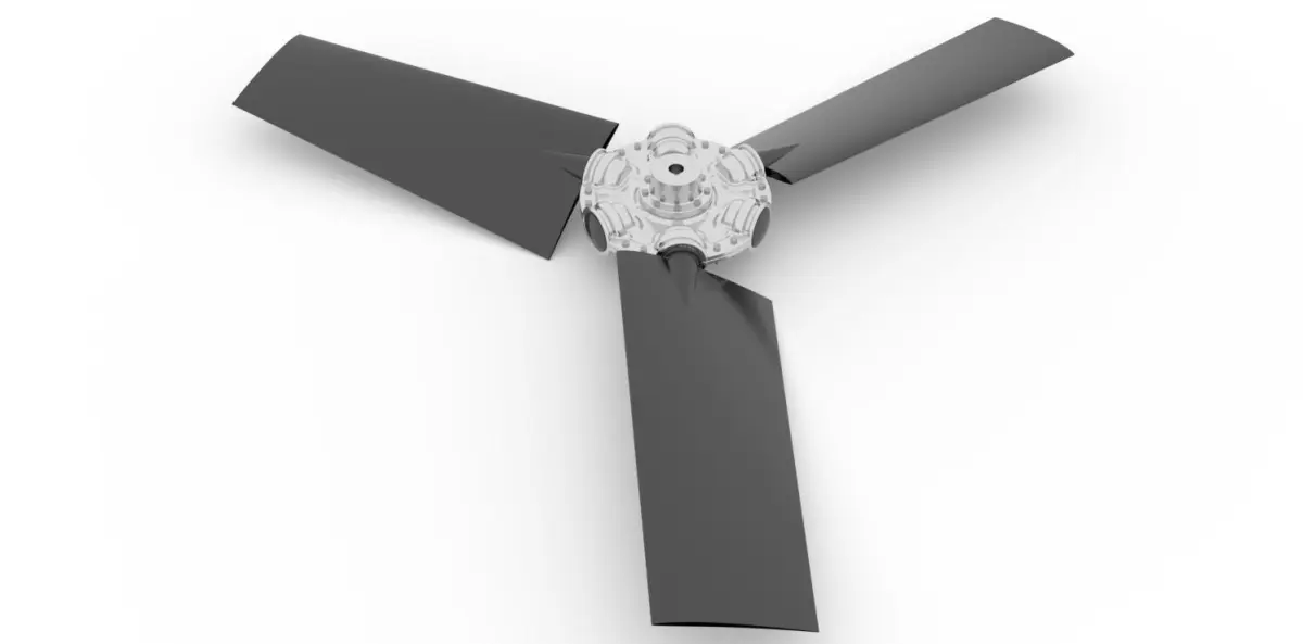 Hélice de 2.6 mts, aspa de PPG y hub con macho de aluminio.