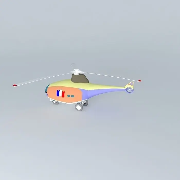 This 3D model was originally created with Sketchup 6 and then converted to all other 3D formats. Native format is .skp 3dsmax scene is 3ds Max 2016 version, rendered with Vray 3.00 Helicopter for the boat Coqu'Art