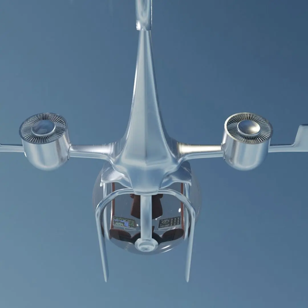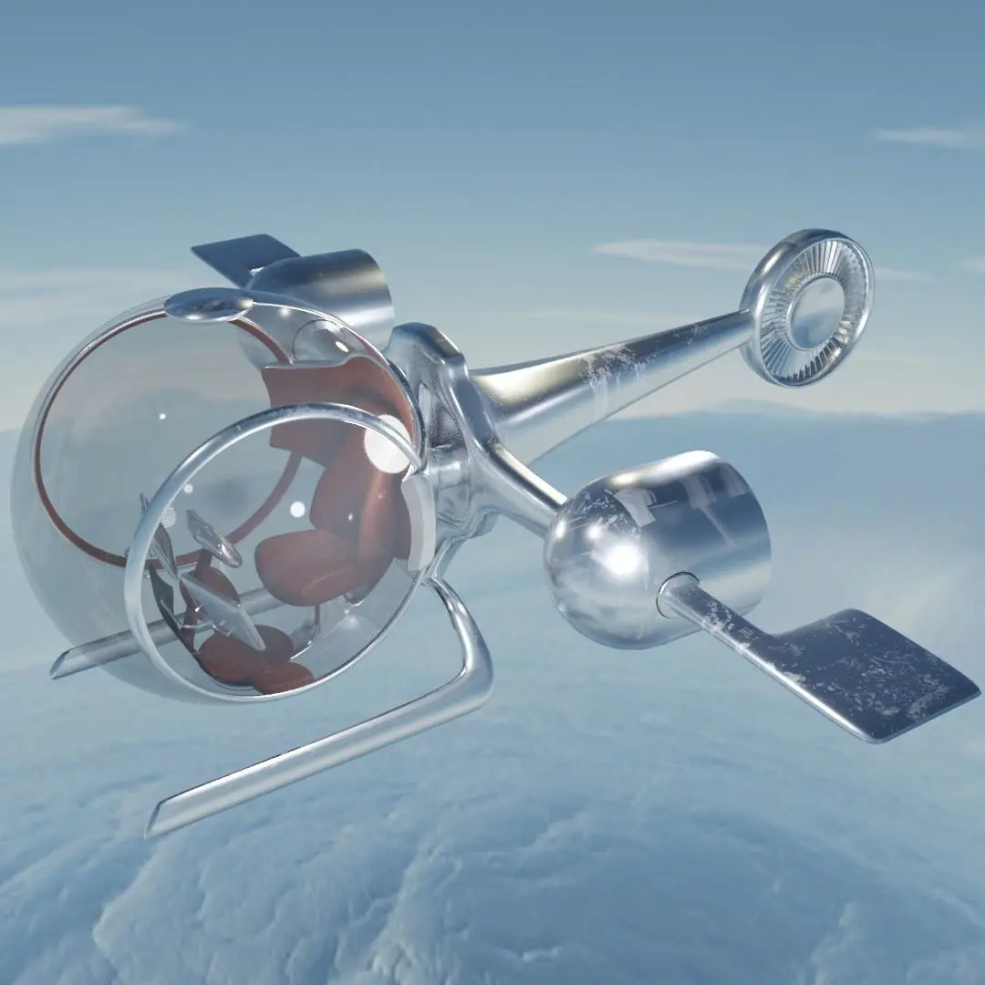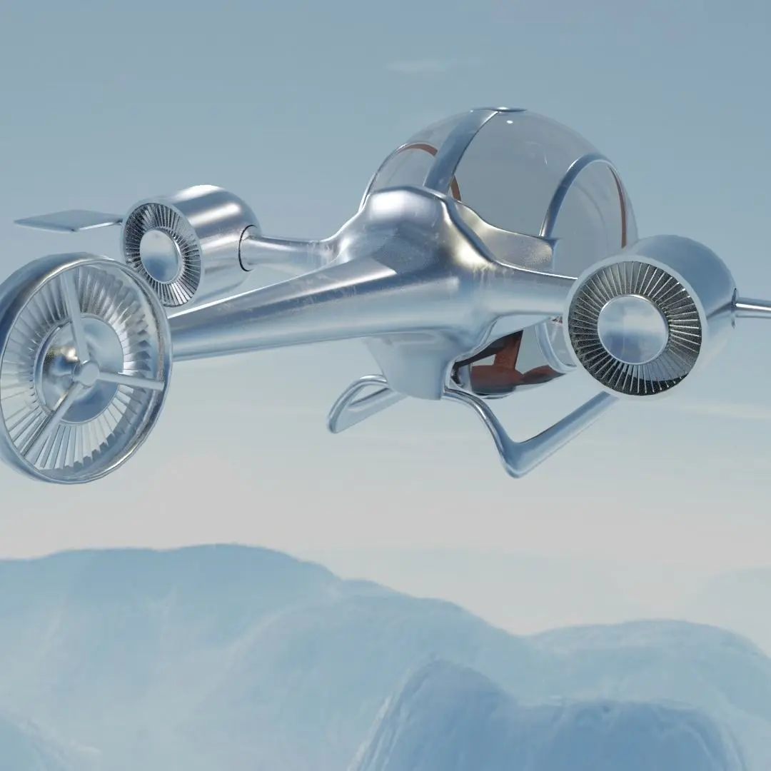 HomeCatalogHelicopter futuristic airplane flying in sky 3D model