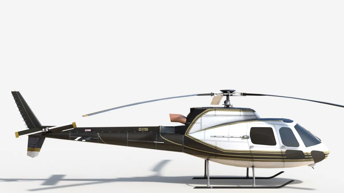 This is a game model is close to Eurocopter AS350, but the model is not a copy of it.The interior is missing.