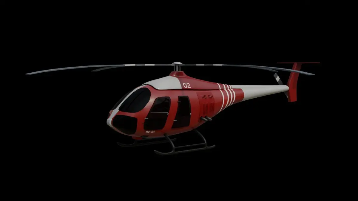 A medium complexity model of a Mi Mil 34 helicopter created in Blender and rendered in a hangar scene.The scene is used for preview purposes only.Materials are packed in the model. Asset prepared to be used in a video game.