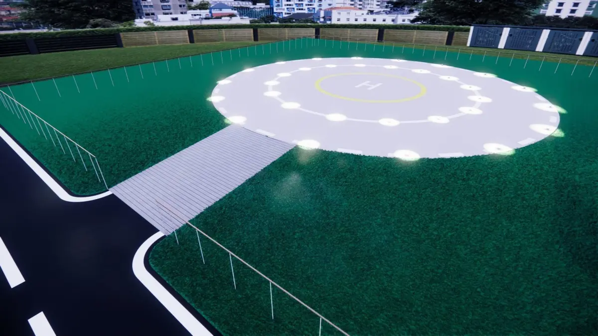 - the diameter of this helipad is 32m and it was designed referring to the Advisory circular AC No: 150/5390-2C for Heliport Design.