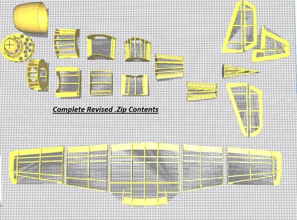 This was was my first attempt at one of these conversions. Its a little rough around the edges, made using only tinkercad.com, I have come a long way design wise from this first experiment that started on thingiverse for free. To see the full notes on this project, visit the following link. https://www.thingiverse.com/thing:5161066This version will always be free to the public. It makes a nice naked floor model or ceiling hanger, but it's not one I will be actually flying. I am currently working on a completely reworked Version 3 of this airframe that is completely electronics ready for rc. Keep an eye out for that if you are interested in making this plane RC. The v3 is much smoother all around and will be way easier to cover and setup.
