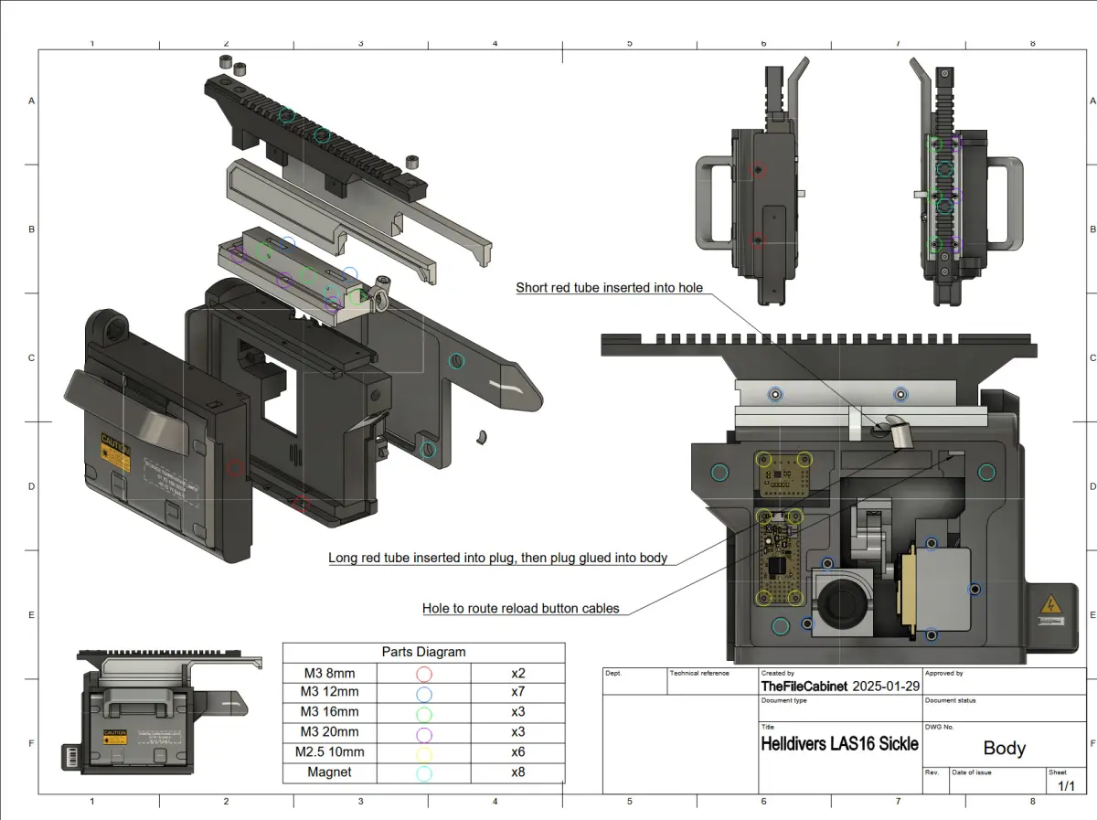 Included in this file are 3D printing STLs, code, decals, required parts list with links, blueprints, assembly tips, and photo and video references. The model is heavily broken down into many small parts, this is to ensure maximum printing quality, and to allow easier colour printing if you wish to print it in accurate colours.