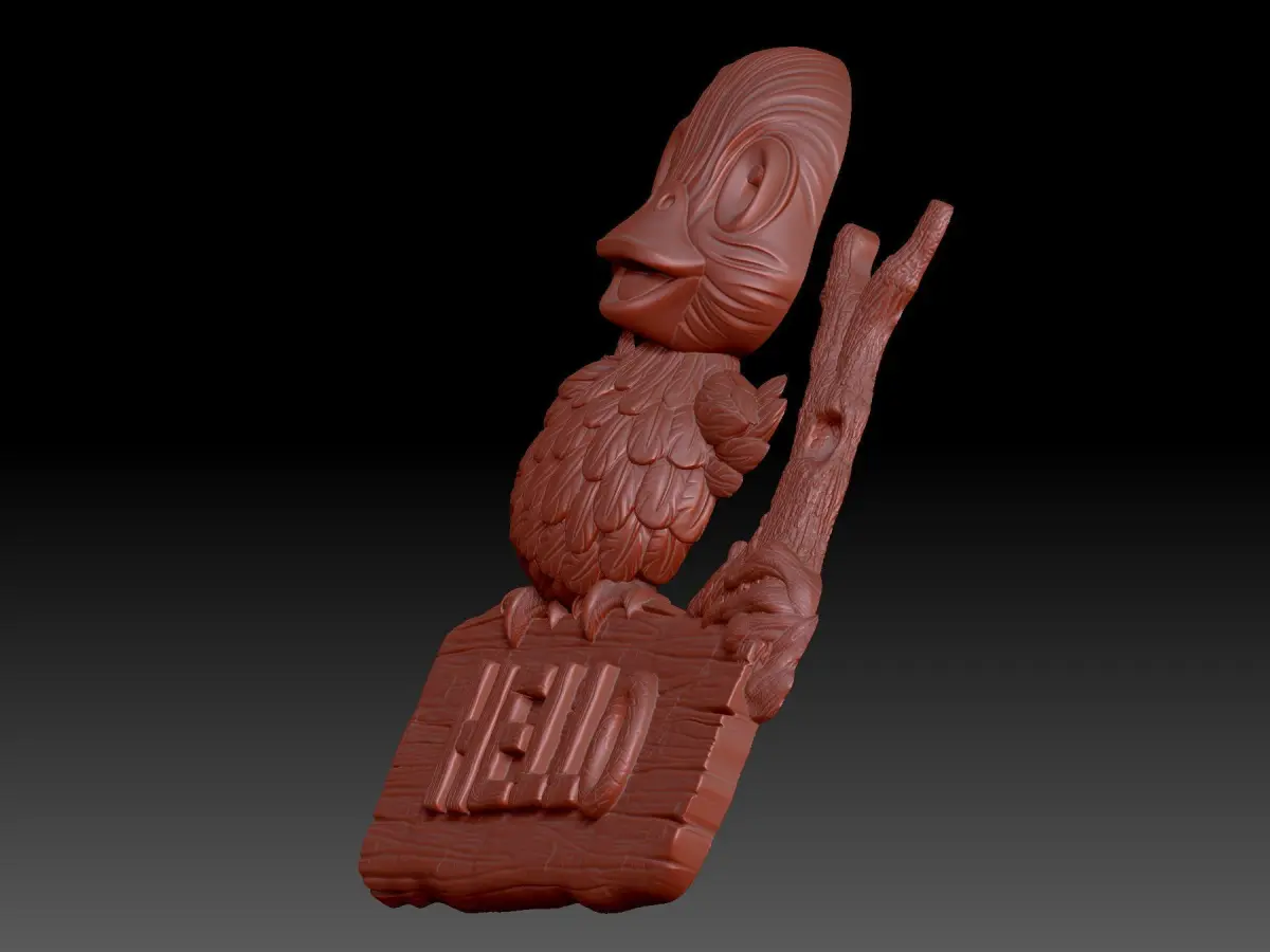 3D model of the Hello bas-relief. It's a cute duckling sitting on a welcome sign. The project is perfect for 3D printing and CNC machining.