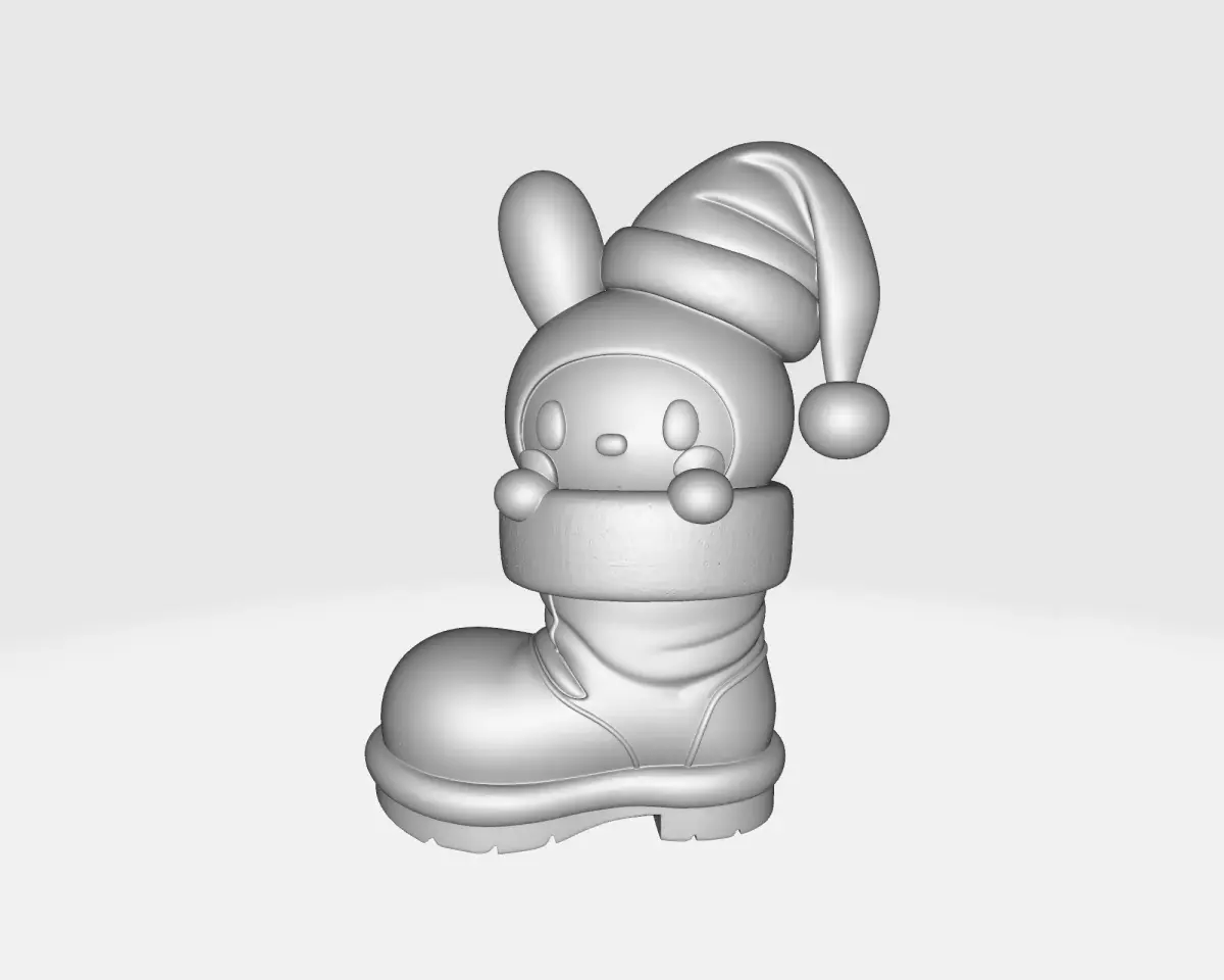 Celebrate the magic of the holidays with this Hello Kitty–inspired Christmas boot figurine! This cute 3D printed ornament features an adorable bunny character peeking out of a cozy red Santa boot, complete with a fluffy trim and festive hat. Its kawaii design style captures the sweetness and warmth of Hello Kitty and other beloved cute characters — perfect for fans who adore charming collectibles and cozy Christmas vibes.