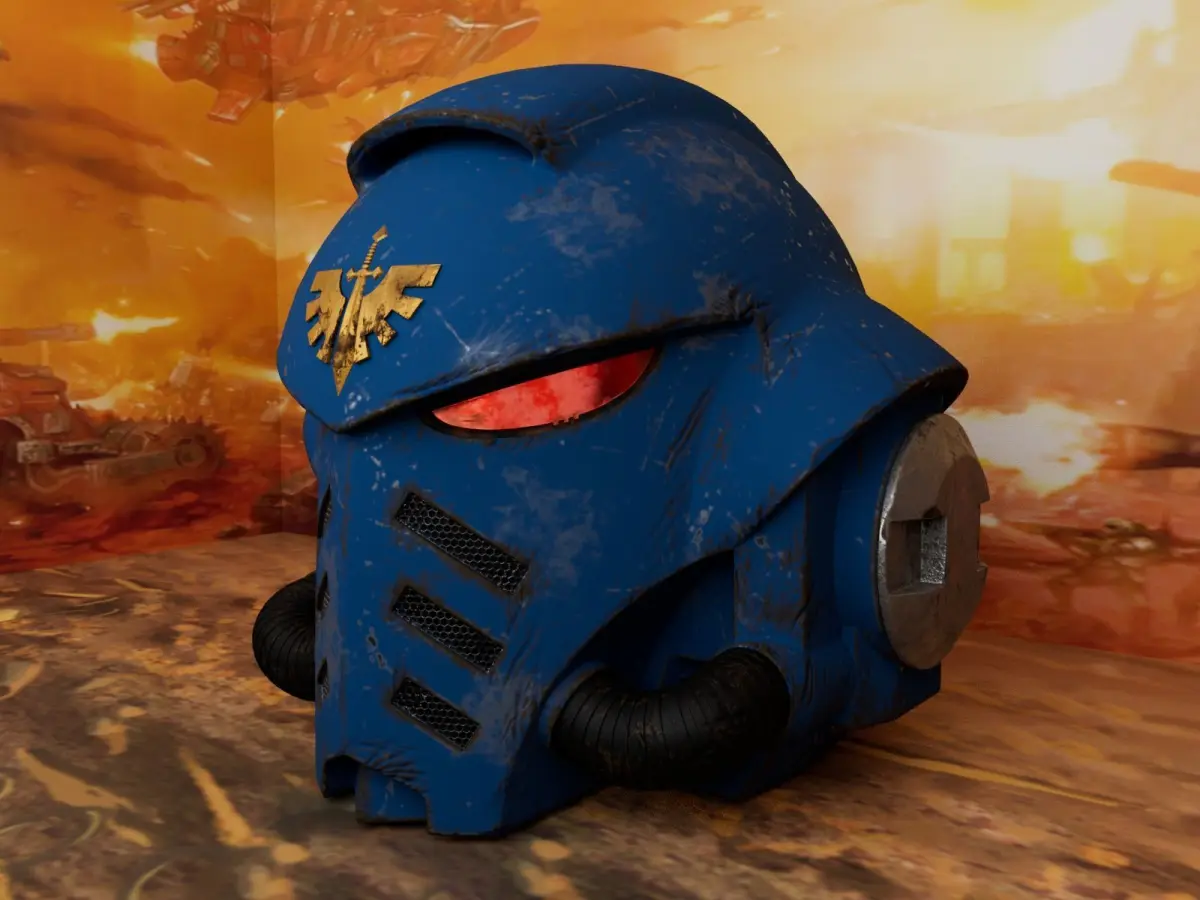 Helmet of a space soldier from the world of Warhammer 40000. Made in the Maya 2022 program and textured in Substance Painter 2021.