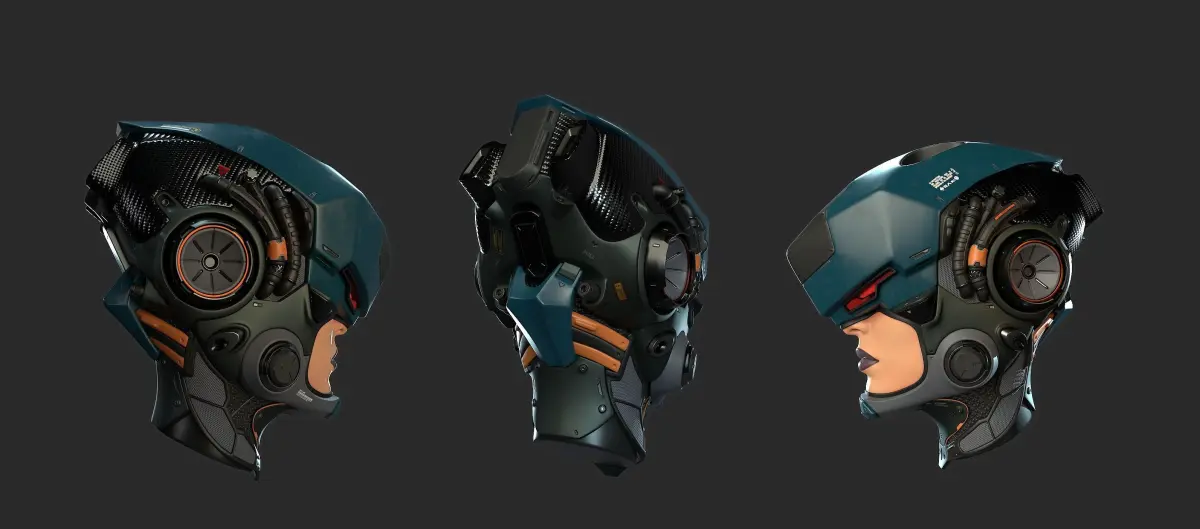 Character Sci Fi helmet - A high poly model with a clean grid.