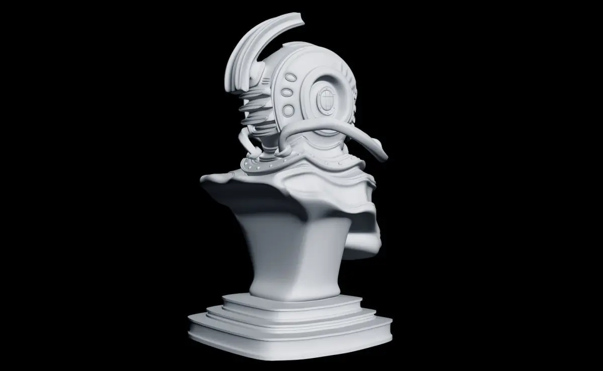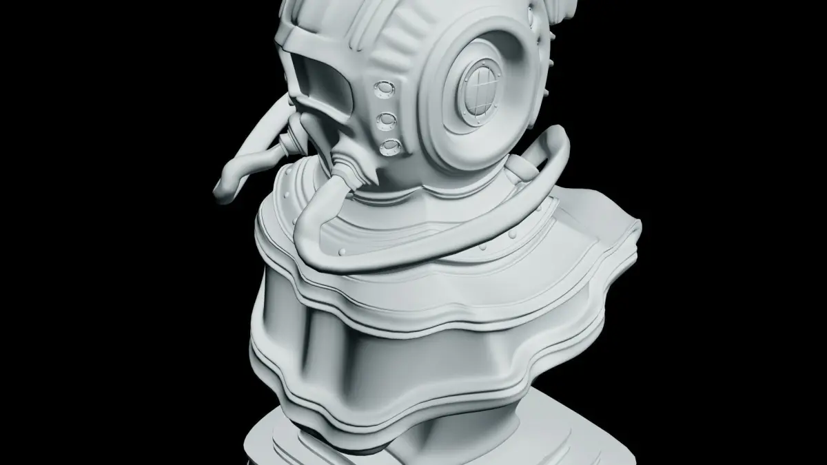 A Steampunk inspired helmet of a old suit scuba diver turn into a sculpture bust to decorate an interior.Without texures, will add if asked !