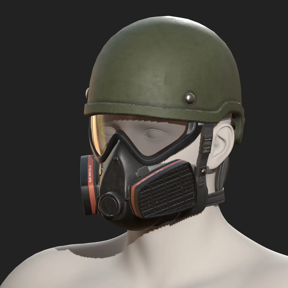 High quality helmet gas mask! This photo-realistic model will bring an expert level of realism to your projects.