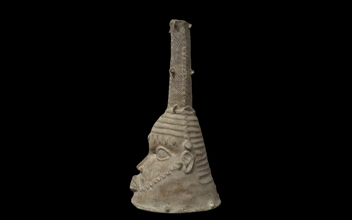 Source: Omorogbe, Aigbe. ,Helmet Mask, Bronze-cast(lost-wax), Private collection, Benin city