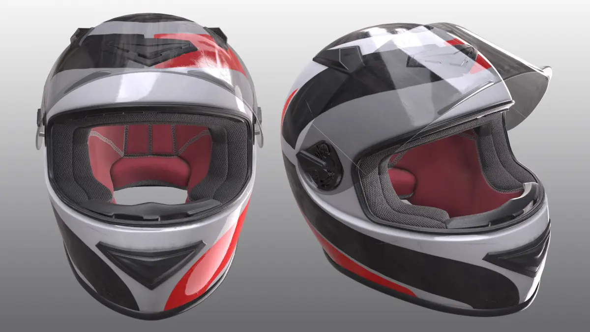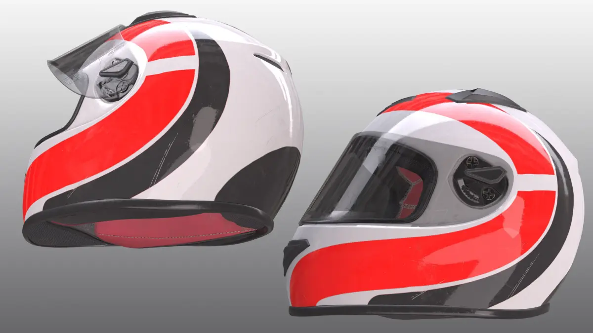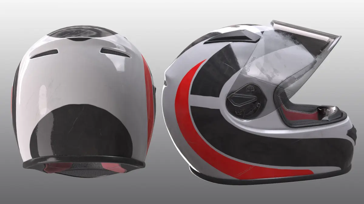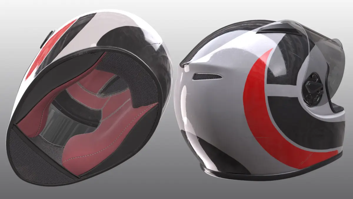 3D Model of the helmet is fully textured with all materials applied.