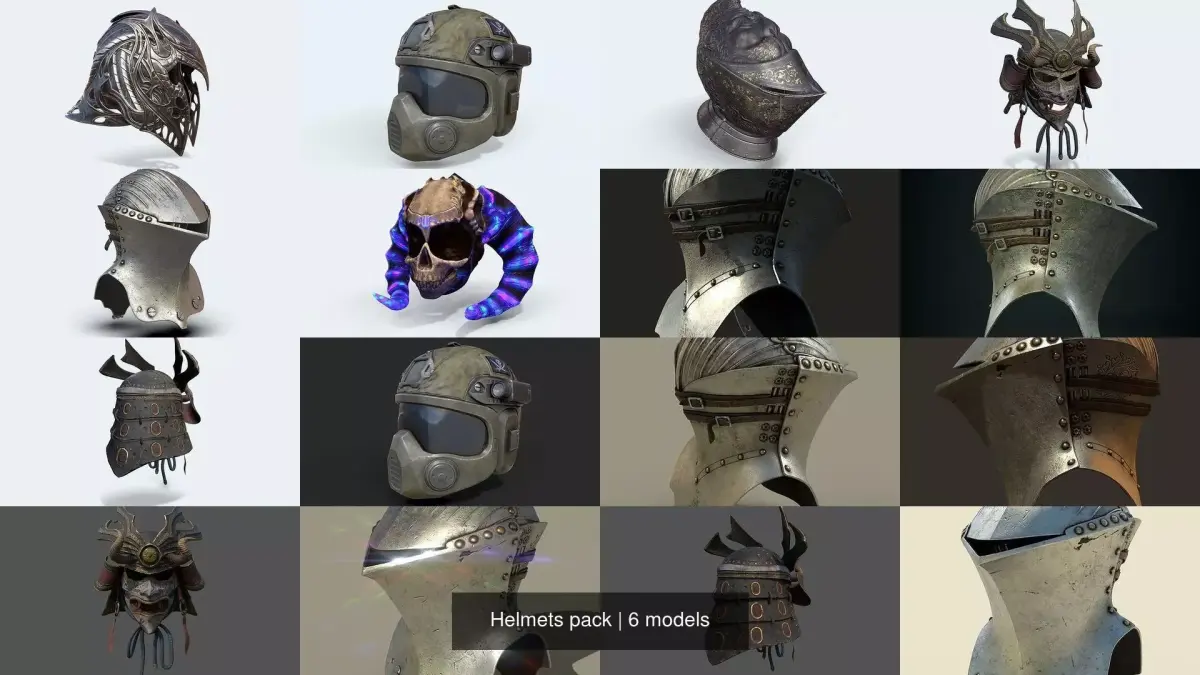 Helmets pack includes six different helmets.