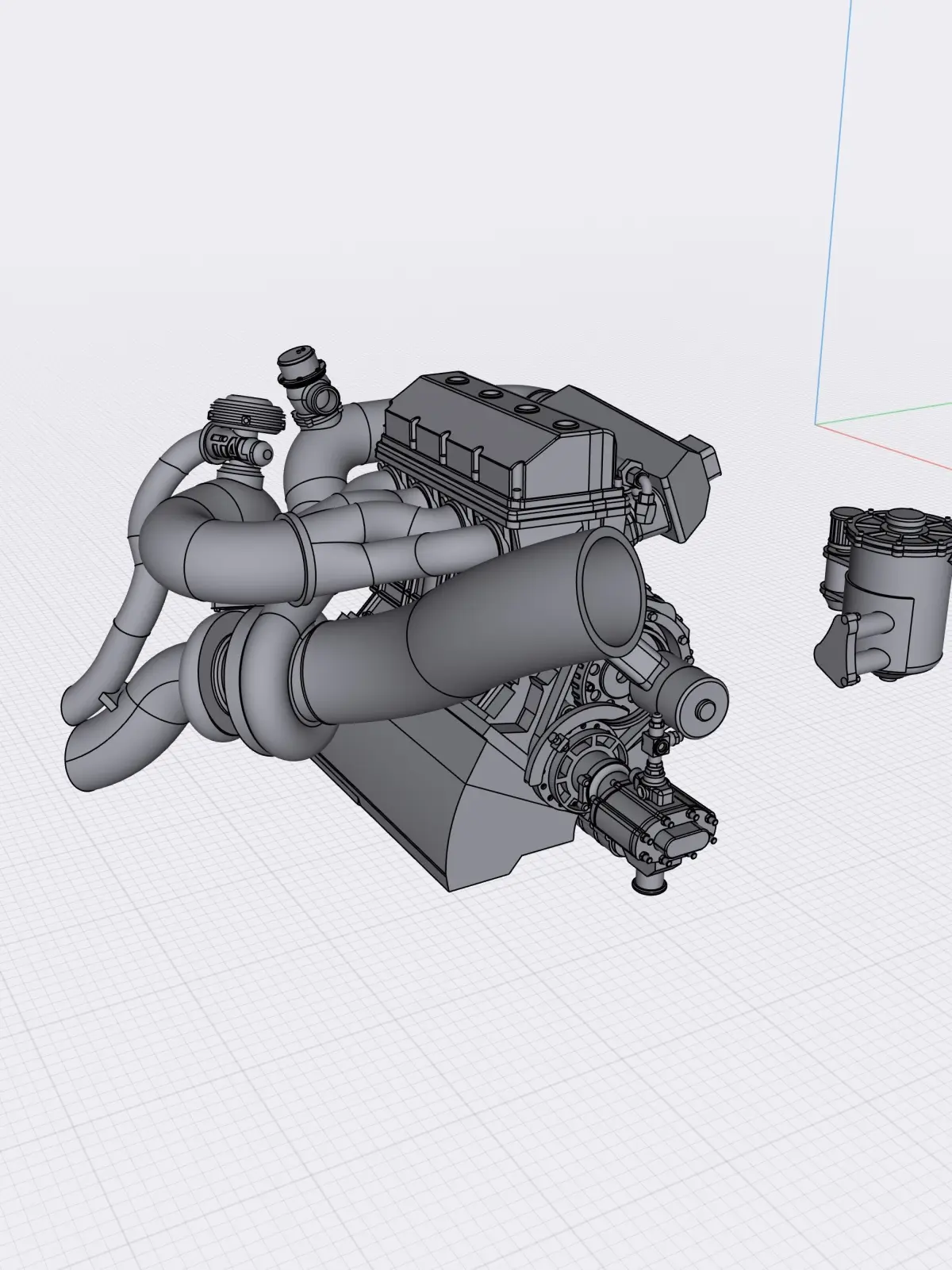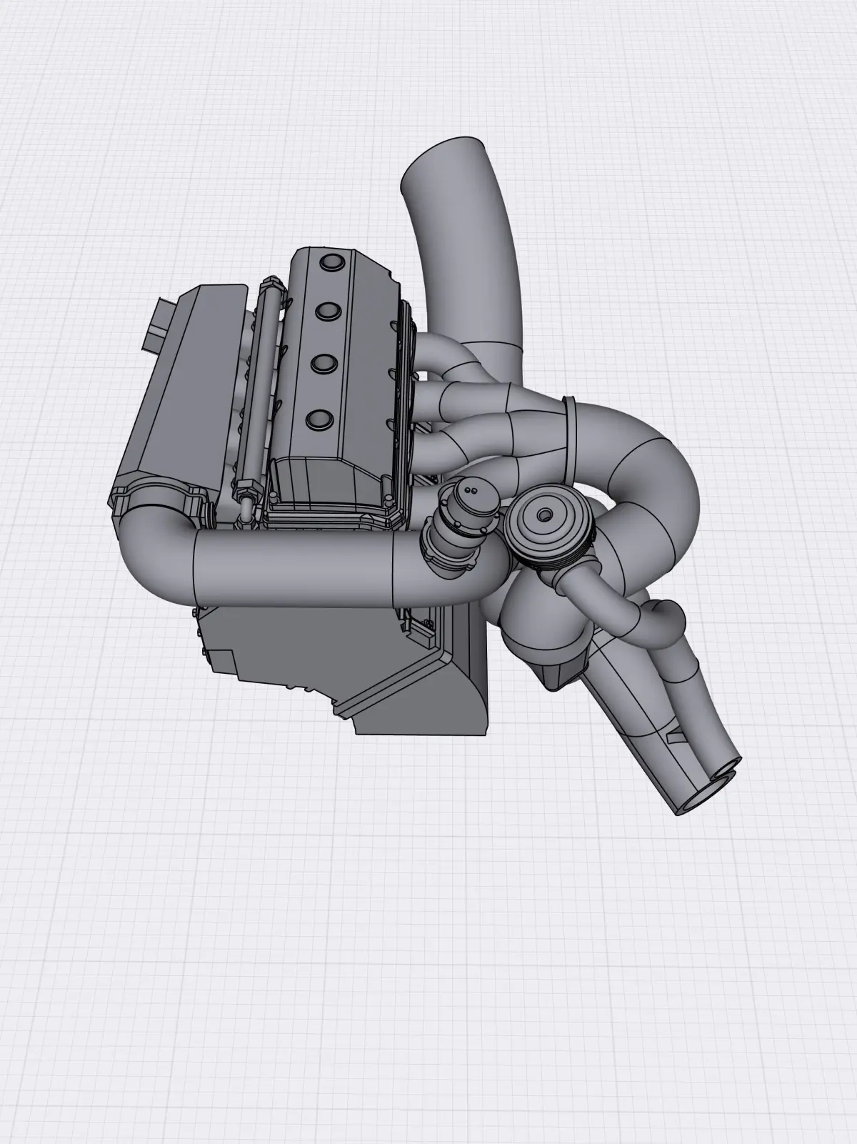 Designed from scratch is a unique Pro Drag racing 4 cylinder engine using half a Billet Hemi motor, with custom turbo setup, high in detail, ideal for scale modeling (currently in 1/24 and 1/25 scale).