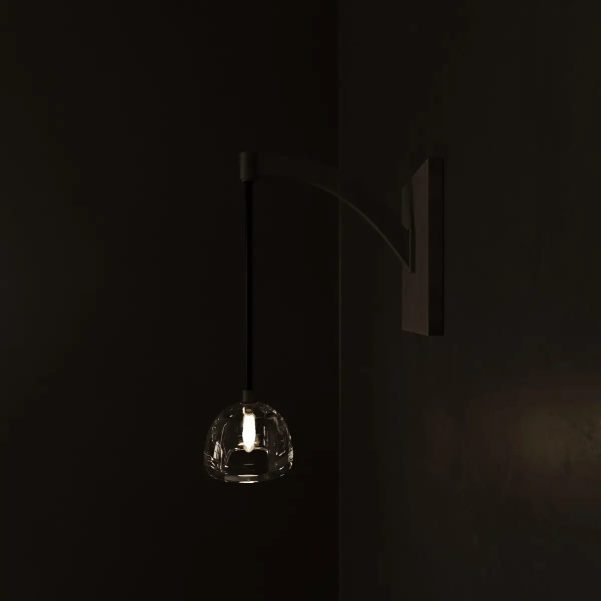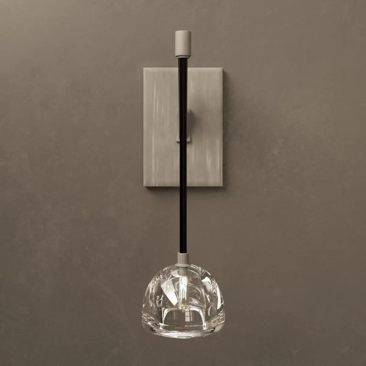 The French Gothic architecture of Paris's Notre Dame Cathedral inspired master glass designer Alison Berger to create this instrument of illumination. Evoking the 12th-century structure's flying buttresses, the fixture's winged armature holds aloft hemispheres of cross-cut glass. Lathe-carved from solid blocks of crystal and then hand polished, the thick, heavy domes play counterpoint to the solid brass frame's delicate arc – a vision at once fixed and fluid, strong and fragile. Viewed as an object in space, the silhouette creates a canopy of light overhead.Length: 30cmWidth: 10cmHeigth: 21cm