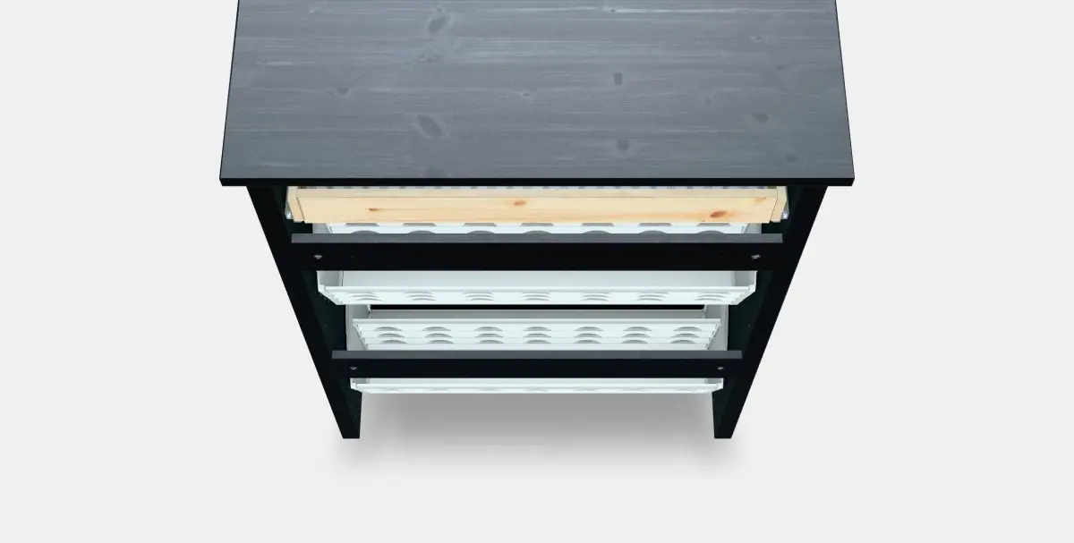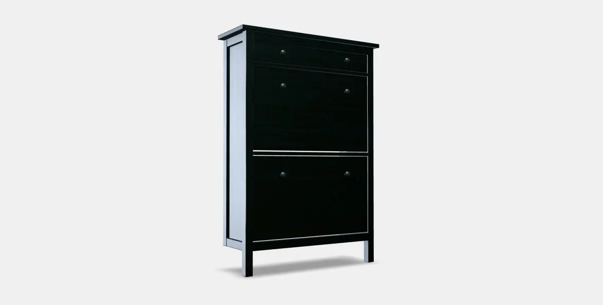 The HEMNES Shoe cabinet with 2 compartments model features high-quality PBR materials, optimized for both high poly and low poly projects without needing third-party plugins.