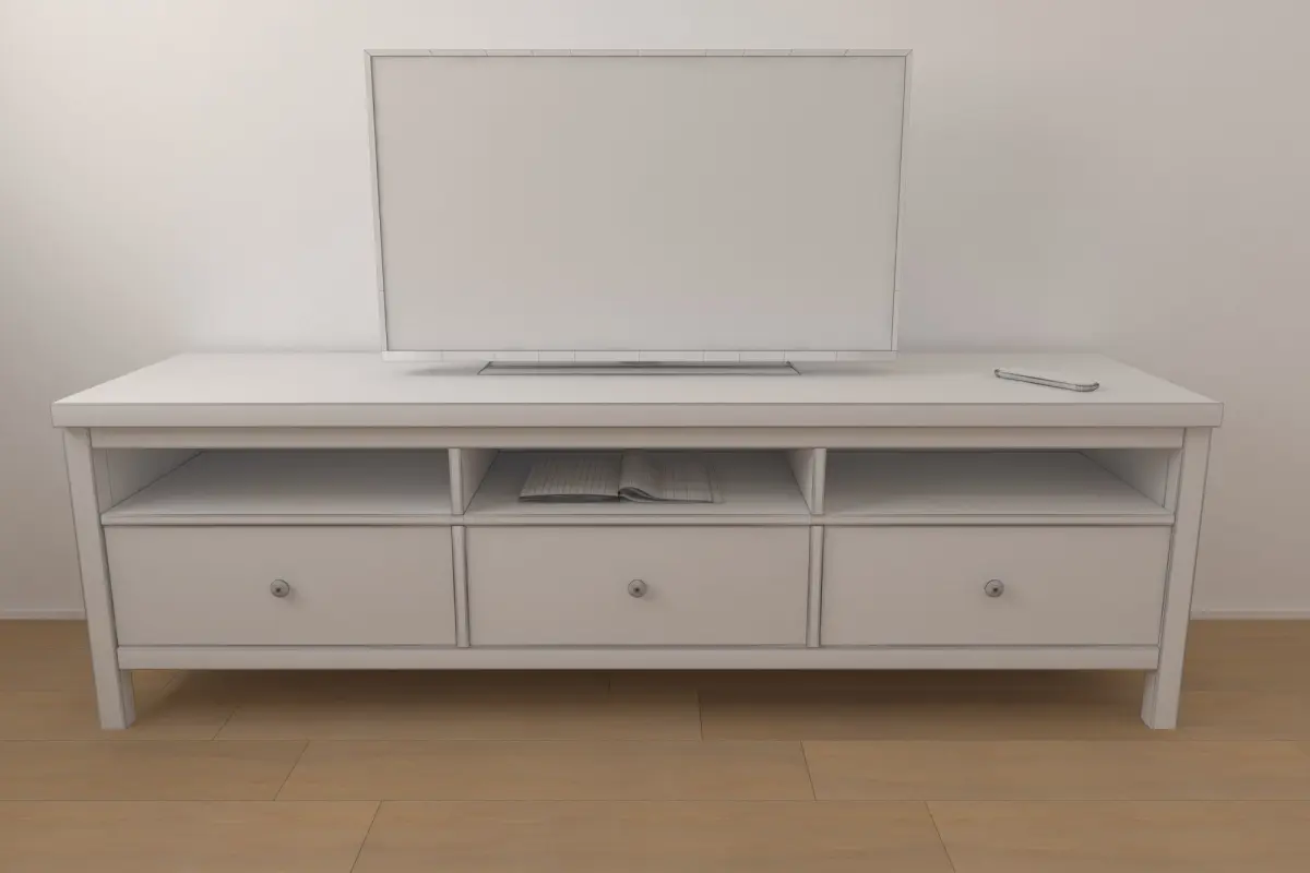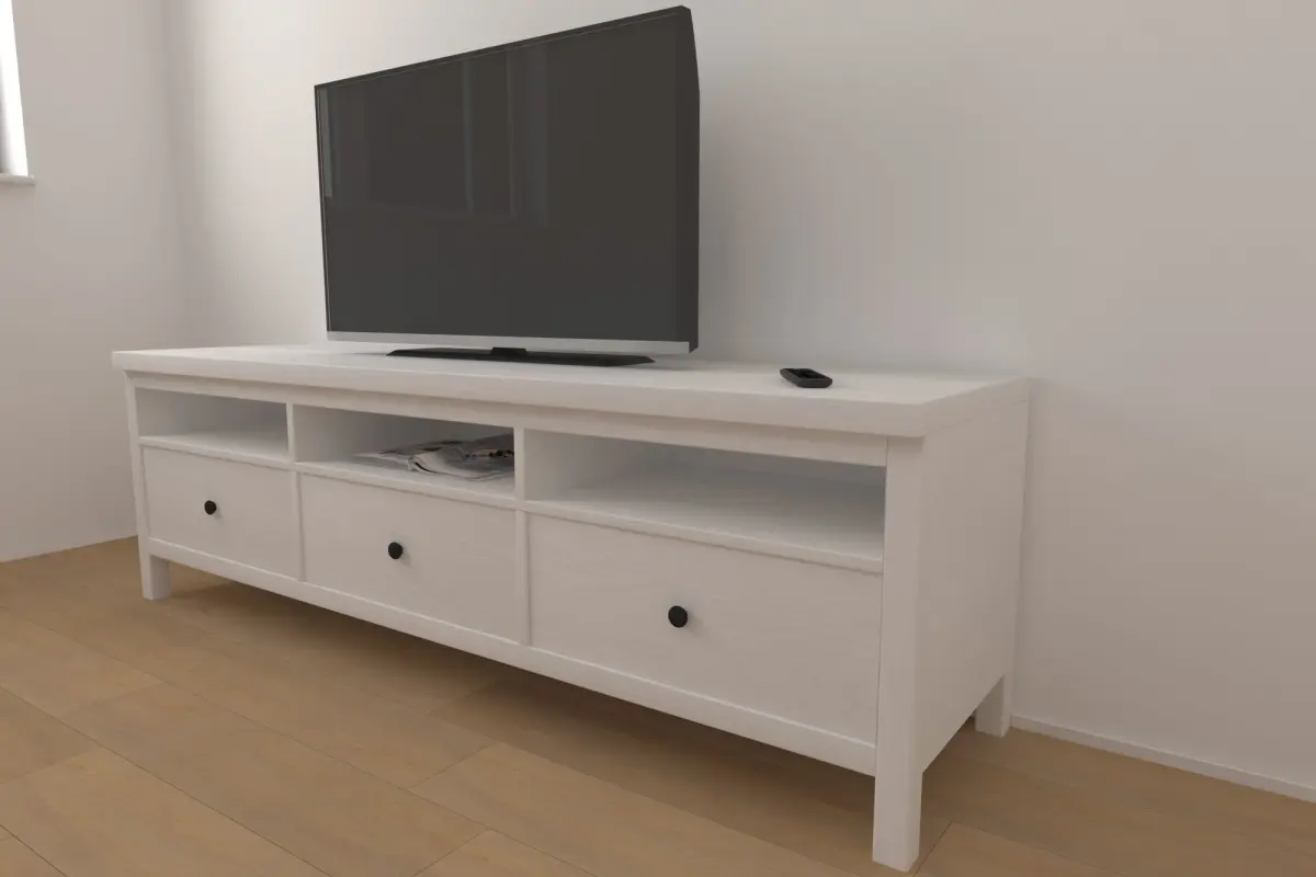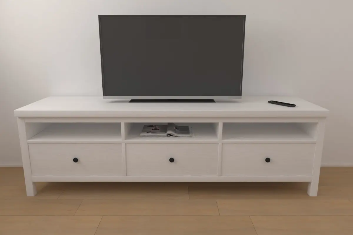 ThisHemnes TV board comes with a TV, a remote and a magazine. The TV board measures: 49 x 184 x 57 cm (LxWxH)
