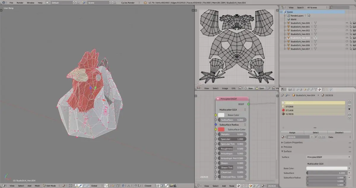 Verts 460 / Edges 910 / Faces 450 / Tris 900
