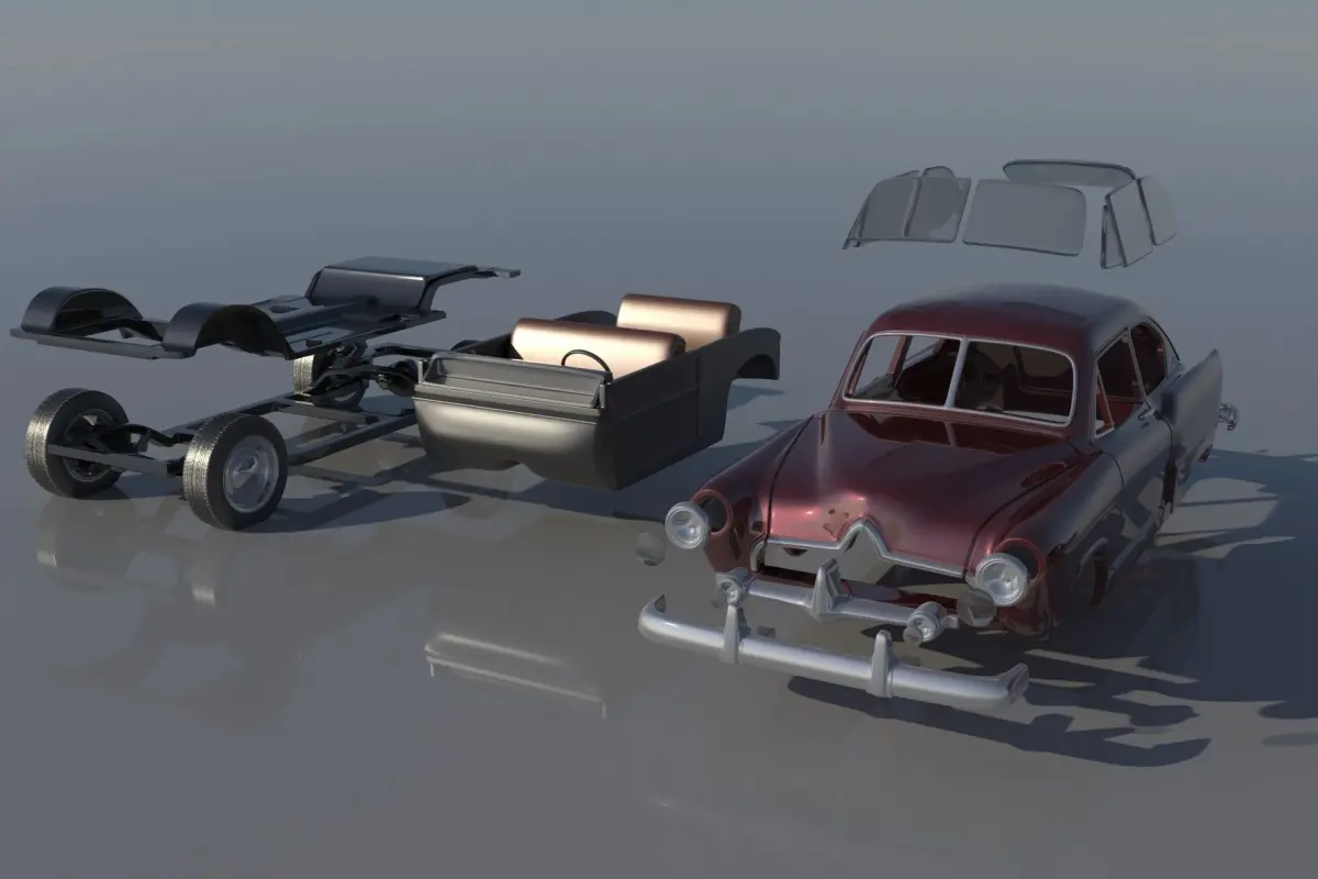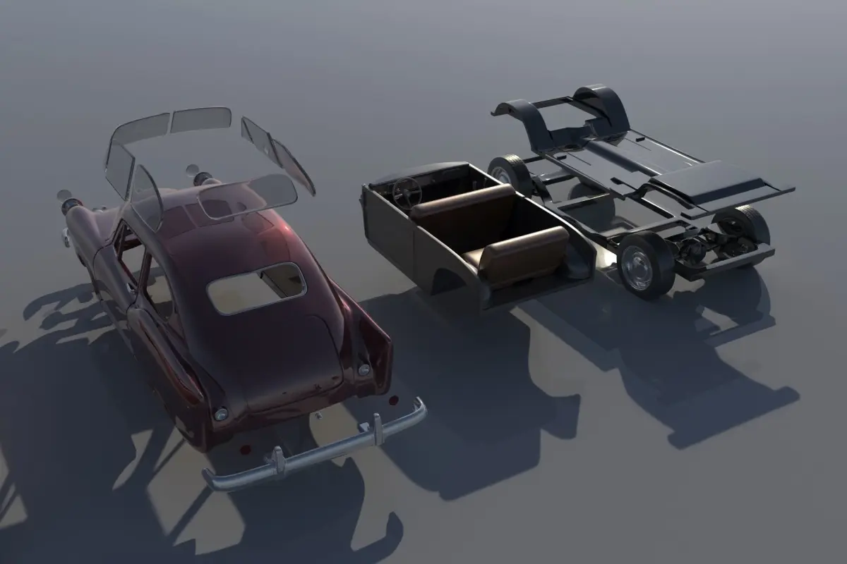 The model includes •Body •Body divided into 9 parts •Grille •Bumpers •Interior •Chassis •Wheels •Tires •Windows and glass for headlights and taillights