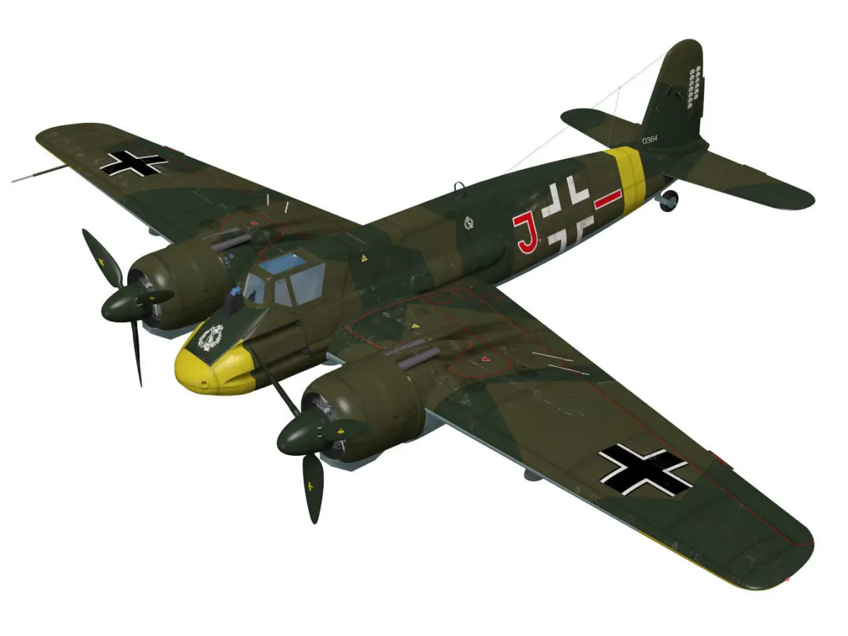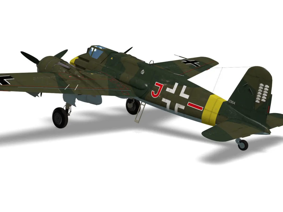 This is a twin-engine attack aircraft used by the German Air Force during WW2.The model is a Type B-2 equipped with MK103 machine gun.The model's Landing gear is divided into flight and landing state parts.