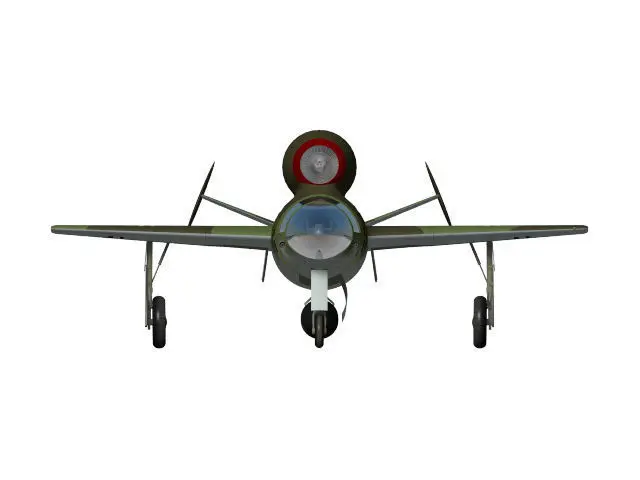 This jet dive bomber was developed by Henschel at the end of WW2.It is said that several aircraft were completed by the end of the war.The model's Landing gear is divided into two parts, one in flight and one in landing.The cockpit is a simple representation.