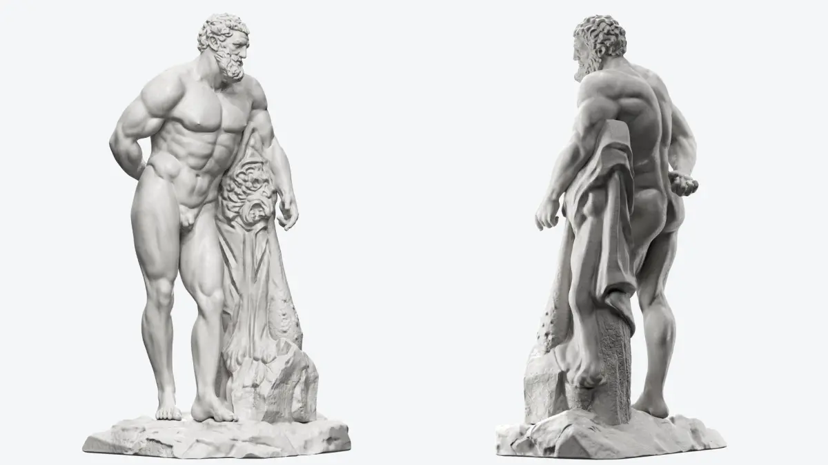 Heracles SculptureIf you will need stl file format to 3d print the model just text me. Model has UV'sIn the archive you will find all maps. There is also High Poly version inside the archive 2 500 000 Polys approx. Model is for CORONA render. Heracles in ancient Greek mythology .