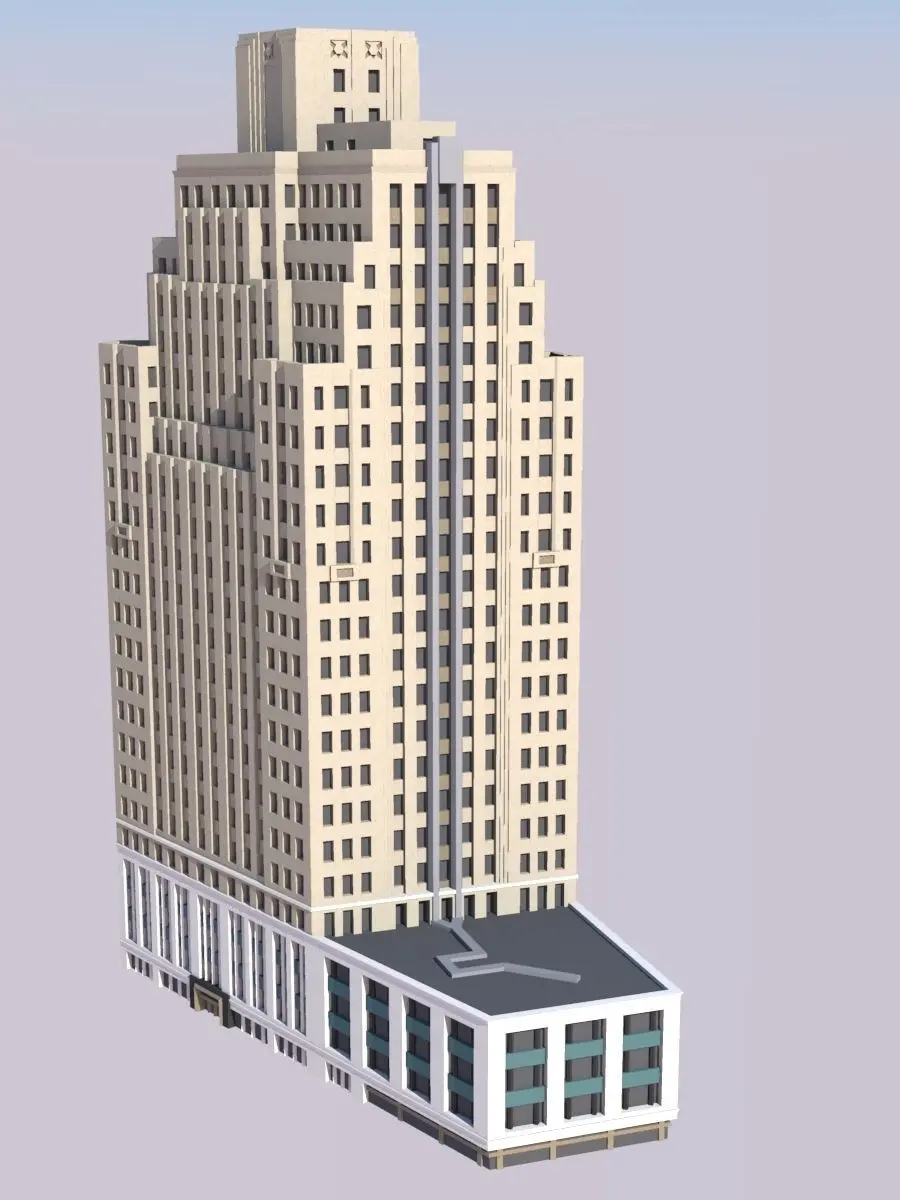 The Herald Square Building is a 327ft (100m) tall skyscraper in New York City. Located at the intersection of Broadway and 6th Ave on its namesake square, the building stands prominently over one of Manhattan's busiest intersections. This building was designed by Clinton & Russell in an Art Deco style, adhering to the distinctive New York zoning code that required an extensive use of setbacks as the building climbed in height. The Herald Square Buidling was completed in 1930. At the southern end of the block is a 4-floor low-rise building, constructed separately around 1940.