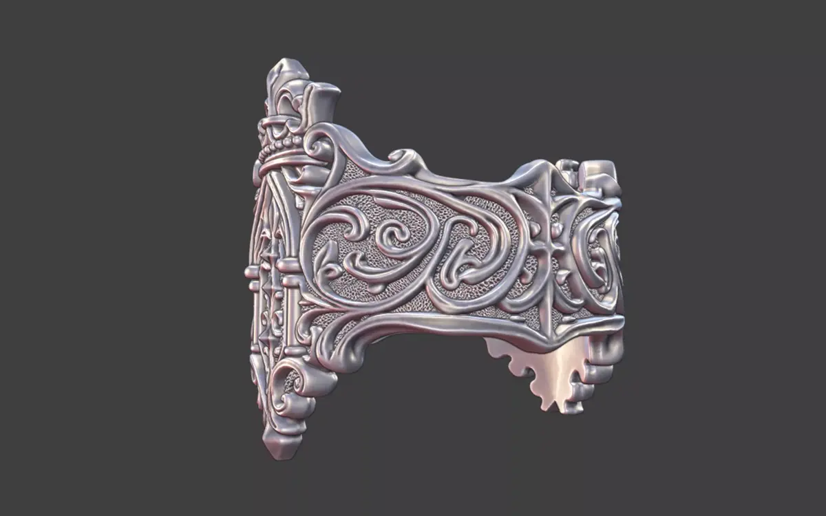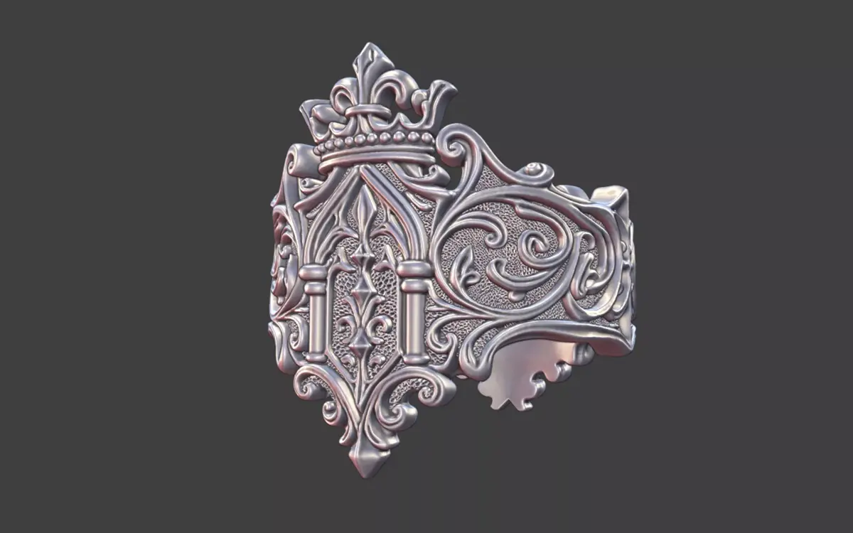 a modern take on a classic style.heralic crown elements with scrollwork an heavy texture for higher contrast