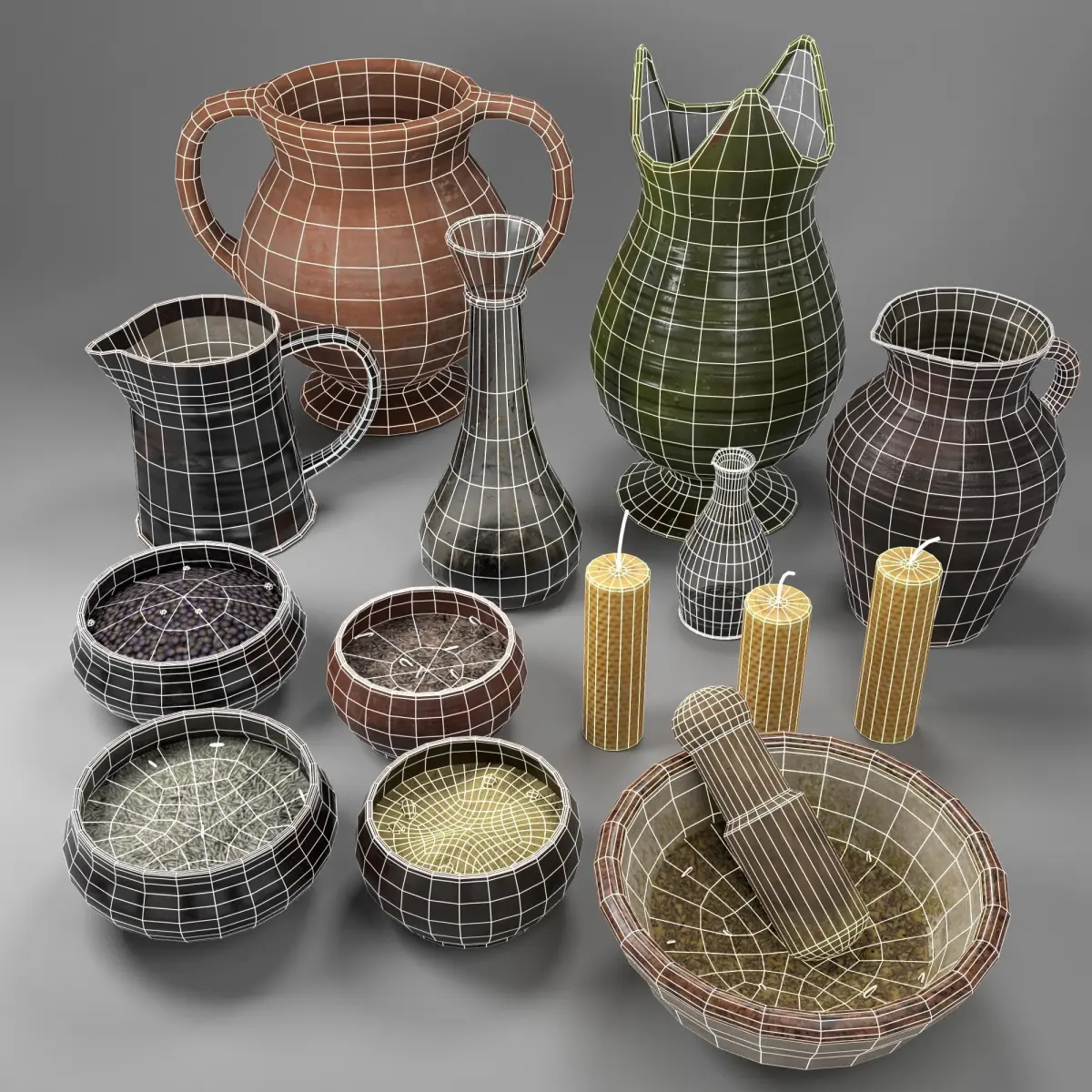 Herb Bowls Scene 3D Model PBR Texture available in 4096 x 4096 Maps include : Basecolor, Normal, Roughness, Height and Metallic. All Preview renders were done Marmoset Toolbag 4 Scaled to real world scale. Customer Service Guaranteed. From the Creators at Get Dead Entertainment. Please like and Rate! Follow us on FaceBook and Instagram to keep updated on all our newest models.