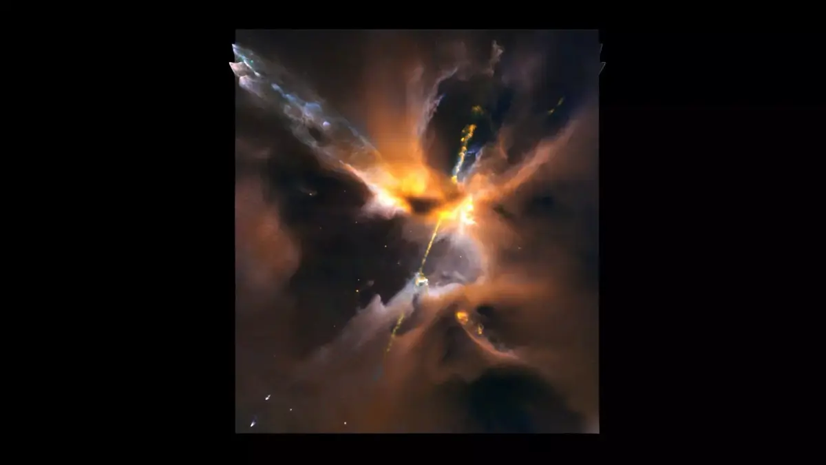 DescriptionHerbig–Haro (HH) objects are bright patches of nebulosity associated with newborn stars. They are formed when narrow jets of partially ionised gas ejected by stars collide with nearby clouds of gas and dust at several hundred kilometers per second. Herbig–Haro objects are commonly found in star-forming regions, and several are often seen around a single star, aligned with its rotational axis. Most of them lie within about one parsec (3.26 light-years) of the source, although some have been observed several parsecs away. HH objects are transient phenomena that last around a few tens of thousands of years. They can change visibly over timescales of a few years as they move rapidly away from their parent star into the gas clouds of interstellar space (the interstellar medium or ISM). Hubble Space Telescope observations have revealed the complex evolution of HH objects over the period of a few years, as parts of the nebula fade while others brighten as they collide with the clumpy material of the interstellar medium. First observed in the late 19th century by Sherburne Wesley Burnham, Herbig–Haro objects were recognised as a distinct type of emission nebula in the 1940s. The first astronomers to study them in detail were George Herbig and Guillermo Haro, after whom they have been named. Herbig and Haro were working independently on studies of star formation when they first analysed the objects, and recognised that they were a by-product of the star formation process. Although HH objects are visible-wavelength phenomena, many remain invisible at these wavelengths due to dust and gas, and can only be detected at infrared wavelengths. Such objects, when observed in near-infrared, are called molecular hydrogen emission-line objects (MHOs).