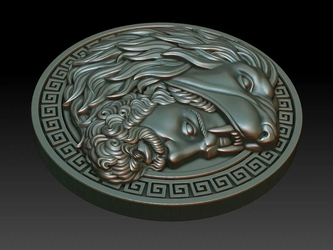3d model Hercules (Heracles) in a helmet made of the skin of a Nimean lion. Hero of ancient Greek myths. For milling on CNC machines or 3d printing. Can be used in the production of souvenirs, furniture, jewelry. Files in stl format, for import to artcam, rhinoceros, 3ds max, etc. You can scale the model to any size you need.