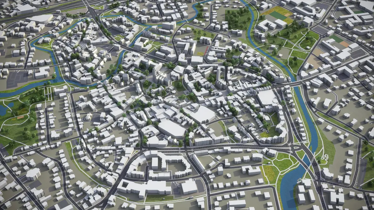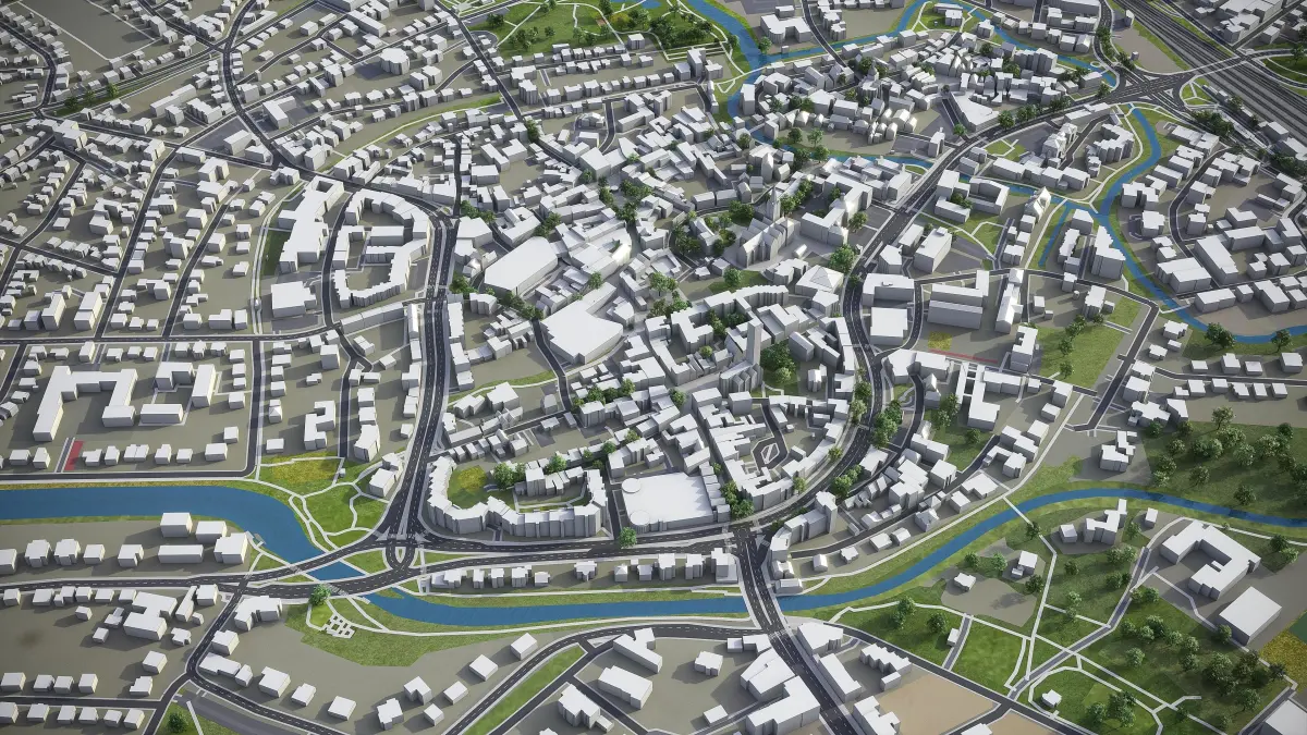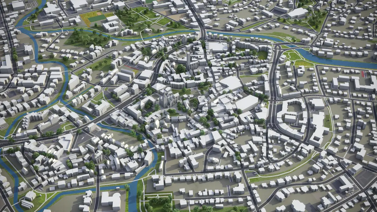 - Full city extents up to 100 x 100 km — or crop to an area of interest for better format compability and scene performance