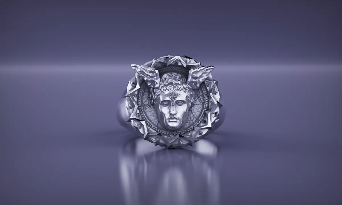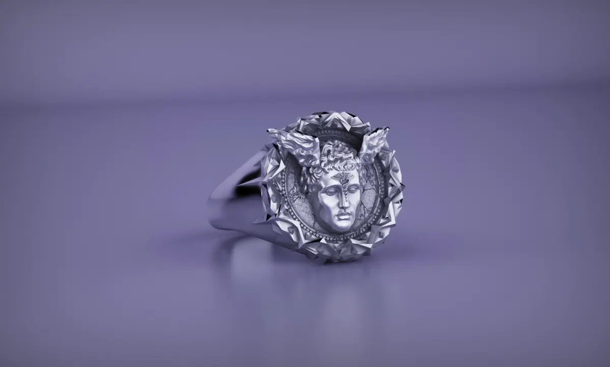 Hermes Signet Ring with comfortable fit and two versions merged and separated 3 parts including the head, border, and the ring so it can be cast into multiple materials and soldered.