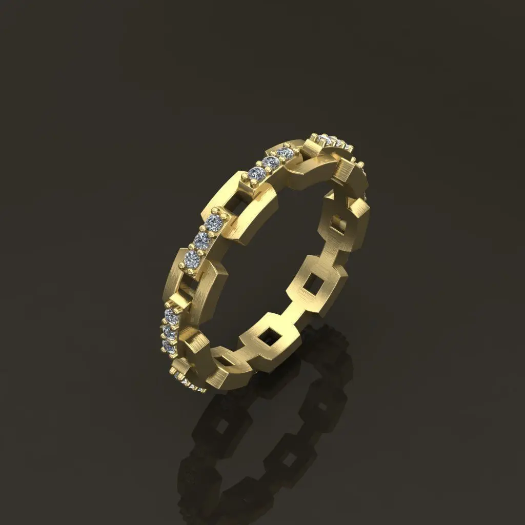 Detail design, Individual sizes availabe on my page, Ready for print, Diamond prongs precut for fast setting, Diamond prongs prepped for custom pieces and mass productionModel ready for signel make to mass production make, Rounded corners for comfort and easy finishing, Similar designs also available on my page, Great price for quality design and prepared files, Adjustable 3dm files for designers, Printed and tested, and Light in metal weight, Contact for inquires and adjustments.