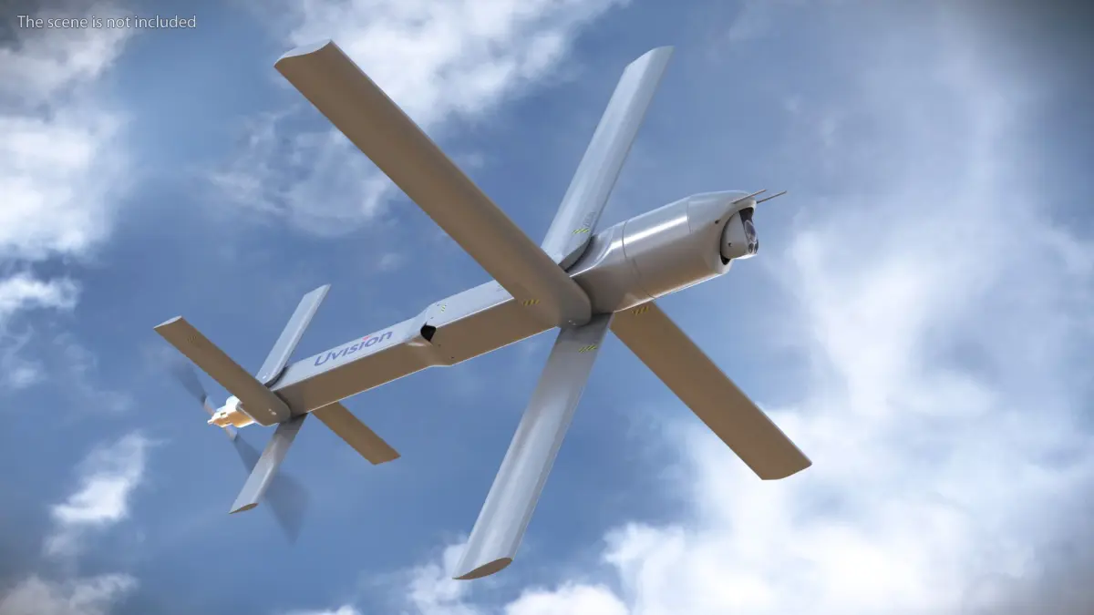 Hero 120SF Drone Launch System with UAV in Flight is a 3d model of an advanced aerial weapon system known for precision and versatility in modern warfare.