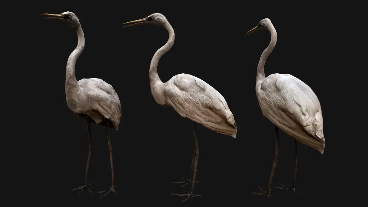 Game ready model without rig and Animation .The model contains lods, detailed information on the images.Stylized and detailed Heron fully textured, sculpted and rendered with Physical based rendering (PBR) - Shown images have been rendered in Marmoset Toolbag .