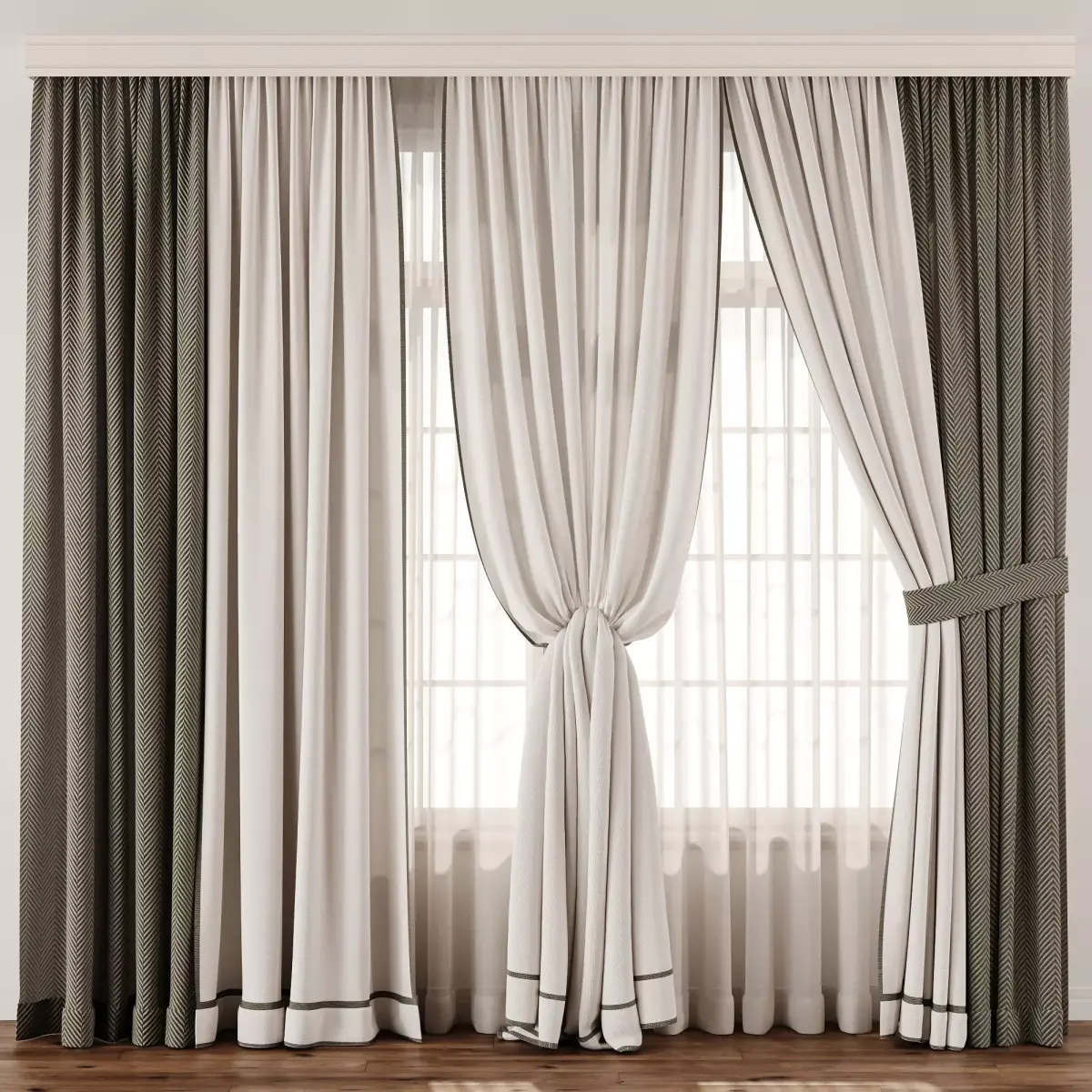 Key Features: • Realistic fabric simulation with herringbone texture and smooth linen blend • Includes decorative trims and sheer layer for light diffusion and visual depth