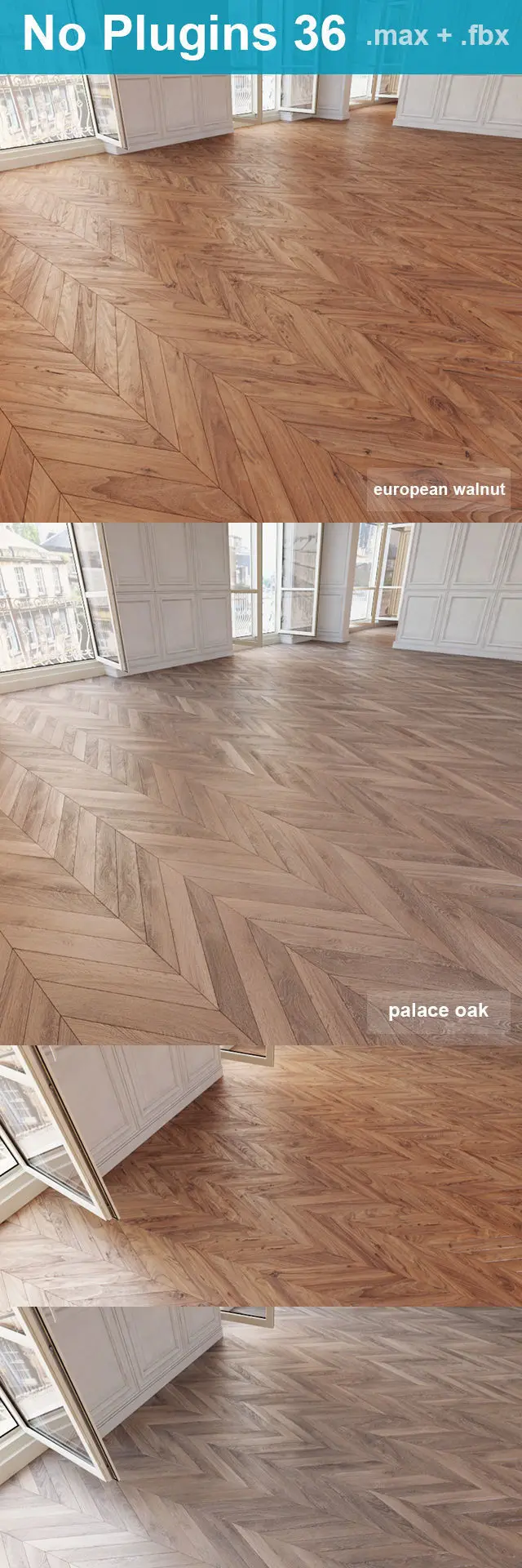 Model, textures and materials of two types of flooring.Designed WITHOUT PLUGINS Archive contains high quality wood texture, a resolution of the board more than 2000 pixels . Formats inside:.max2011.max2014.FBX.mtlFiles with ready TILED floor.