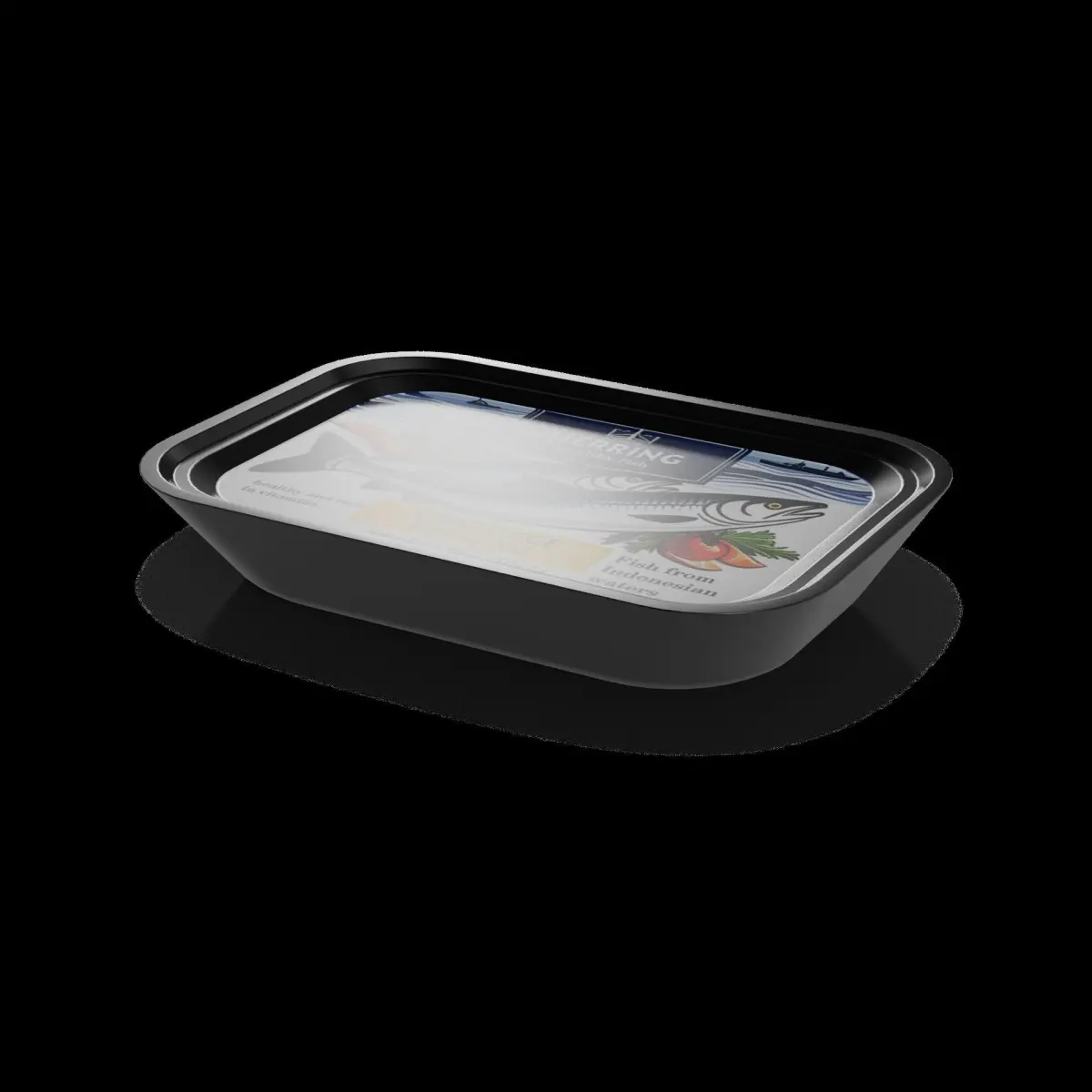 Smoked Herring: Indulge in the rich, smoky flavor of these premium smoked herring fillets. The fillets are carefully arranged in a rectangular, vacuum-sealed plastic package, which is adorned with a label depicting a picturesque fishing boat on a calm sea. The label includes the product name Smoked Herring in elegant, black font.