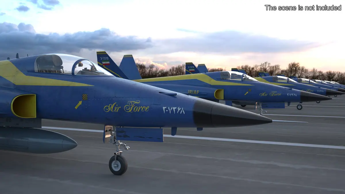 HESA Saeqeh Iranian Combat Aircraft Blue is a 3d model of a twin-tail fighter jet, inspired by the Northrop F-5, designed for modern military aviation and air combat operations.