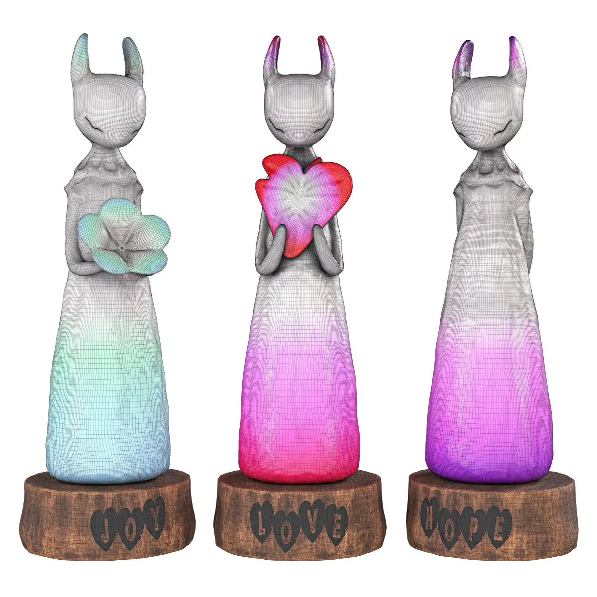 Hevaline Set is a trio of poetic ceramic sculptures, each shaped as a gentle spirit representing Joy, Love, and Hope. Designed with soft curves and a calm, organic silhouette, these figures bring a quiet emotional presence into any interior space.Subtle color accents on their ceramic surface create a warm visual rhythm, making them ideal for modern living rooms, artistic studios, shelves, and minimalistic decorative scenes.