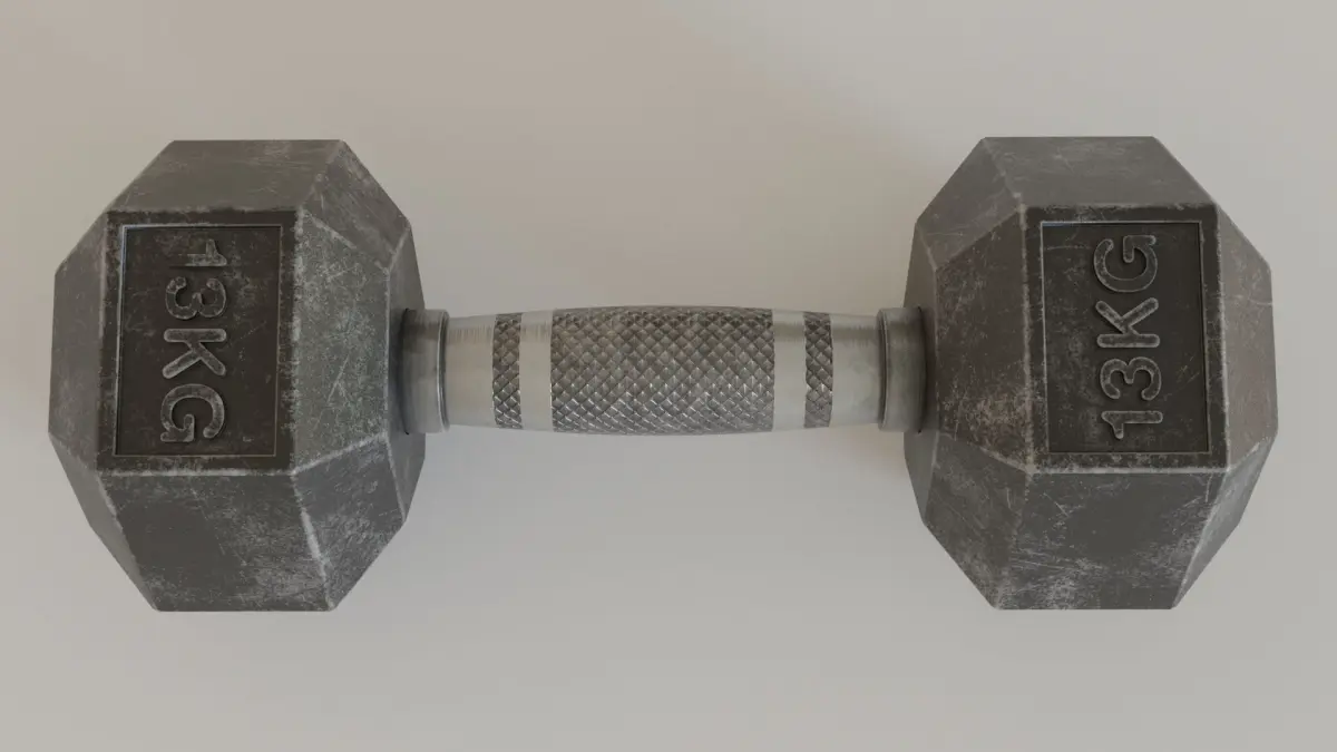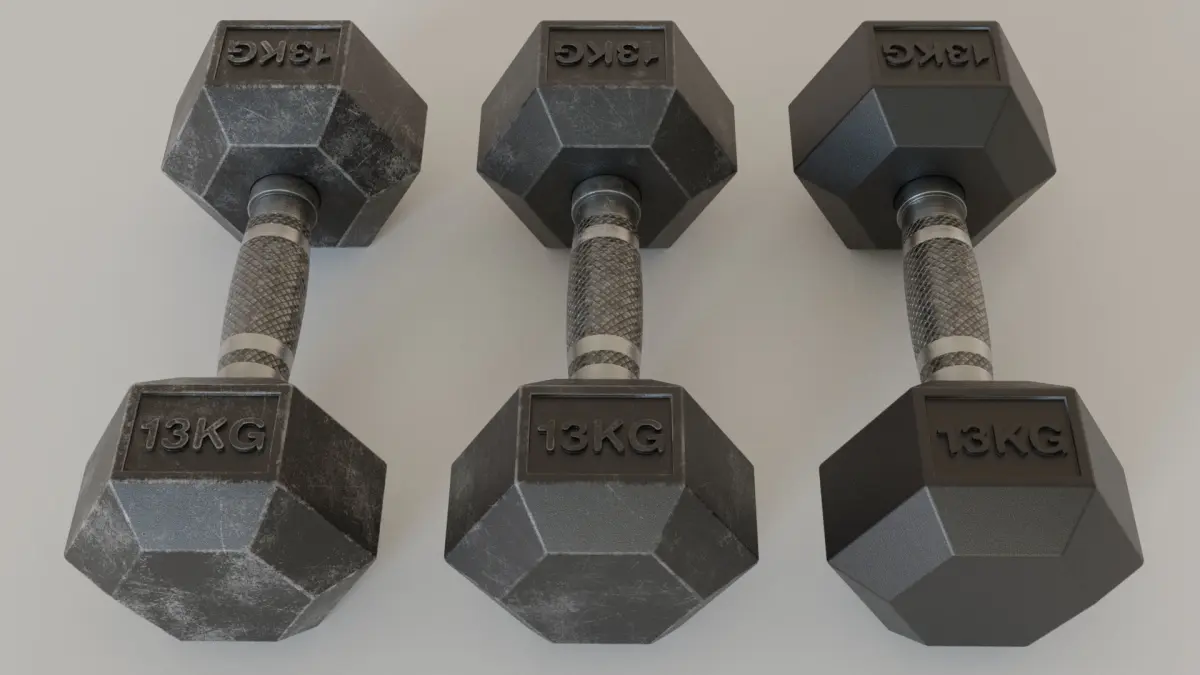 Low Poly model of a Hex Dumbbell 13kg. 2 steps chamfer with weighted normals. 3 different materials to get the look of a Brand New Dumbbell, a used dumbbell, and a very dirty look with scratches and dust. Textures in 4k. Unwarpped model. Non overlapping UVs. Material_ID texture included.