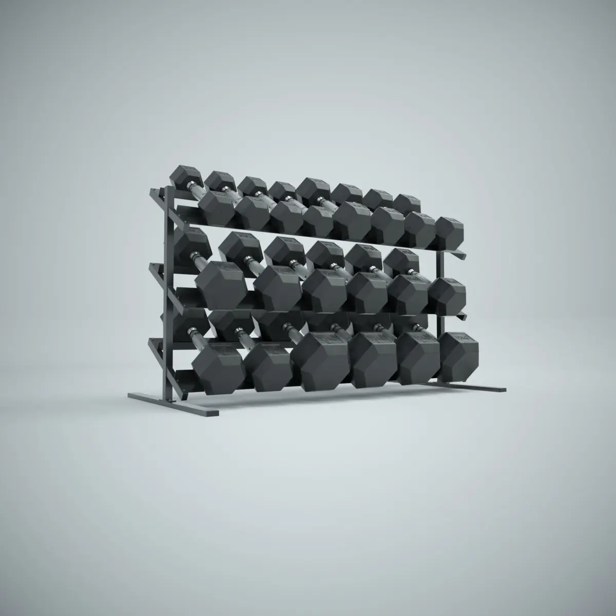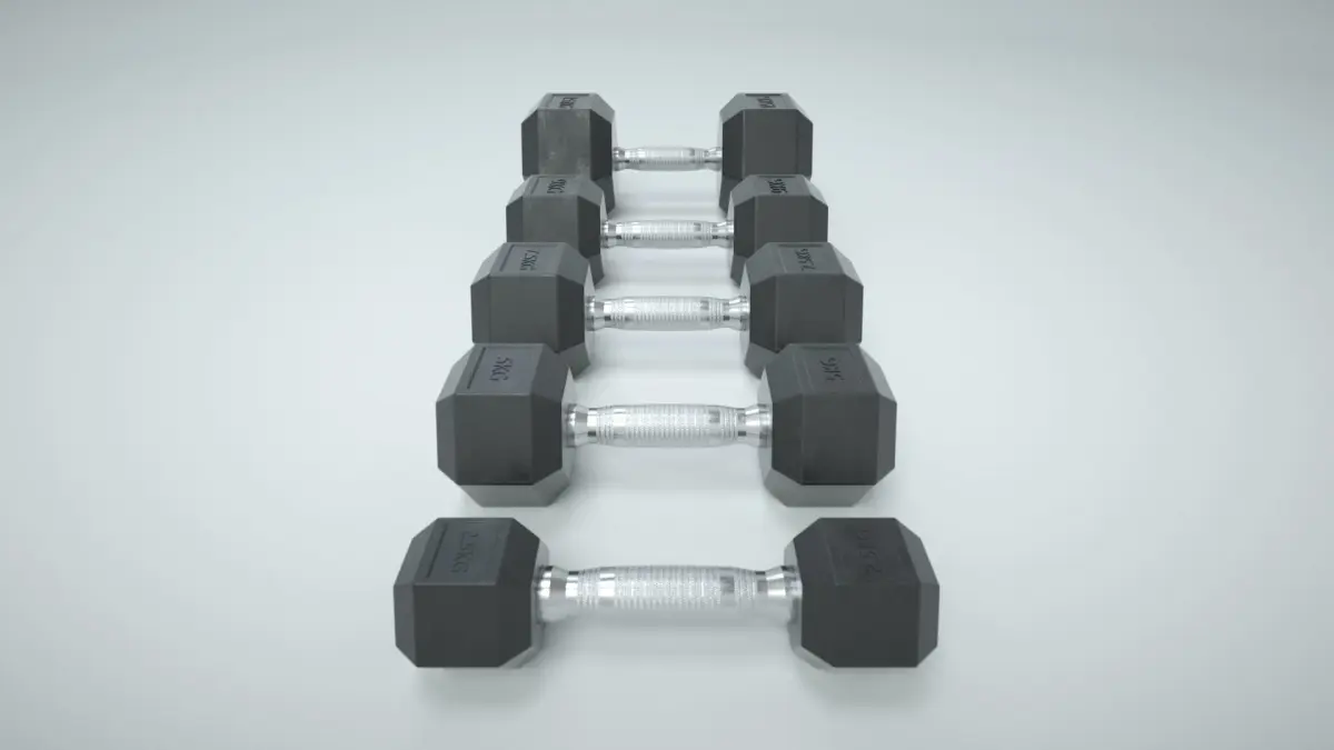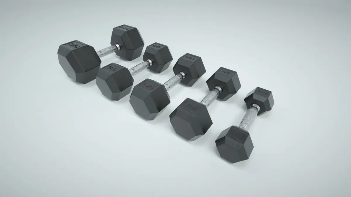 This File Contains a set of 3D Hex Dumbbells and a Dumbbell Rack. Polygon Count: 6701Vertices: 6805