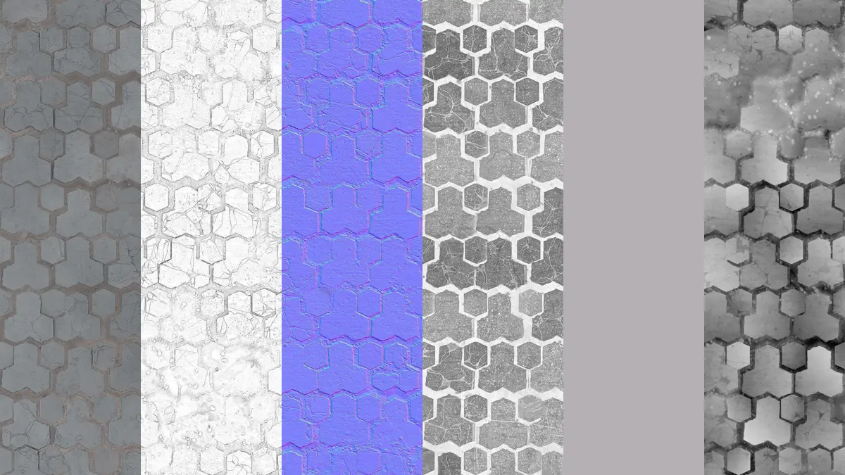 Base ColorAmbient OcclusionRoughnessMetallicNormal (OpenGL)Height (Displacement)The material is tileable/seamless, allowing you to repeat the texture across large surfaces without visible seams. Every map has been carefully baked and cleaned for professional results with minimal setup.