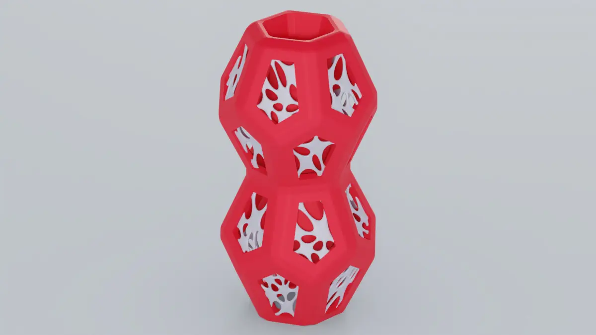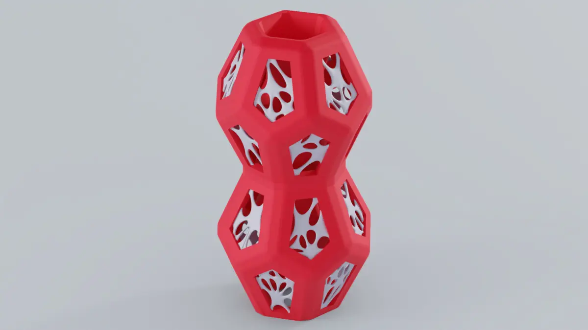 Dual Hexa-Penta Flower Vase with hanging inner holder. Voronoi design on outer pentagons.