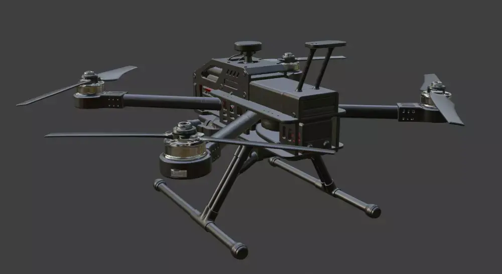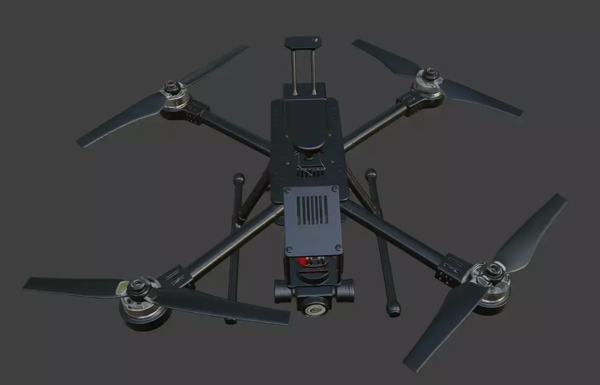 This high-quality 3D model features a professional heavy lift hexacopter drone, designed with intricate details for realistic rendering and visualization projects. The model showcases a robust industrial frame, six powerful propellers with protective guards, a central payload compartment with visible mechanics, and a mounted high-resolution camera gimbal for aerial photography or surveying applications.Perfect for use in animations, game development, VR/AR experiences, architectural visualizations, product renders, or sci-fi scenes. The clean topology ensures smooth performance in various software, with detailed components like motors, arms, landing gear, and electronics bay.